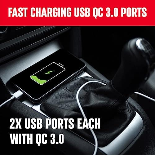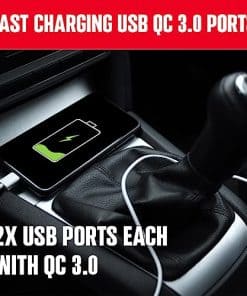 5. Garantía de 12 meses – Este inversor de corriente ha sido probado, validado y aprobado por ETL bajo el estándar UL STD 458 tanto por su seguridad como por su rendimiento. Creemos en nuestro producto y calidad, por eso ofrecemos la garantía que lo demuestra. 6. Cuenta con dos puertos USB QC 3.0, 2 tomas de corriente alterna estándar de América del Norte (cada una clasificada a 15 amperios). Control remoto con cable gratuito, kit de fusibles ANL, cables de batería de 3 pies incluidos.