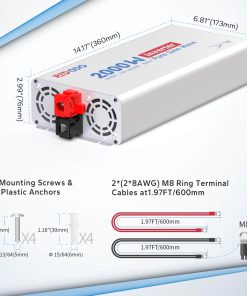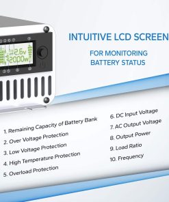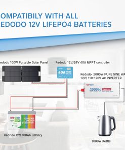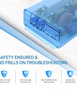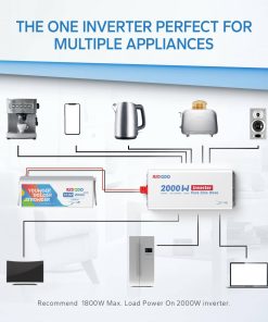 El inversor Redodo 2000W es ideal para microondas, cafeteras y mucho más. Aceptando voltaje de batería de 10.0 a 15.5V DC, adecuado para múltiples tipos de baterías, excepcionalmente bueno para las baterías de LiFePO4 de 12V de Redodo, el inversor de 2000W de Redodo es fácil de instalar tanto vertical como horizontalmente con 2 (2 8AWG) cables de terminal en anillo M8 de batería a inversor de 1.97 pies y 4 tornillos de montaje, anclajes de plástico. La pantalla LCD en tiempo real muestra el estado de la batería, incluido el voltaje de la batería, la capacidad restante del banco de baterías, el voltaje de entrada de CC, el voltaje de salida de CA, la potencia de salida y la relación de carga, lo que facilita el acceso al rendimiento del sistema, permitiendo autonomía y gestión en ajustes y adaptaciones del sistema. Con indicaciones de sobretensión, bajo voltaje, alta temperatura, sobrecarga, habrá un mínimo esfuerzo en la solución de problemas y la máxima comodidad en el uso diario. El inversor Redodo 2000W cuenta con ventiladores de refrigeración integrados y las siguientes funciones de protección: Sobretensión, Bajo voltaje, Alta temperatura, Sobrecarga, protegiendo su uso diario de la electricidad, brindándole alivio y seguridad. Con un interruptor ON&OFF a su disposición, también puede encender o apagar la energía según lo desee. (Nota: Por favor, no invierta las conexiones positivas y negativas de la batería al inversor, y apague el inversor durante la instalación). Redodo proporciona un servicio considerado y orientado al usuario y soporte técnico. Con un equipo de personal técnico conocedor listo para ayudarlo a abordar todos los problemas y brindar una experiencia de compra fluida y satisfactoria, Redodo es su compañero leal en la suficiencia energética, limpieza y seguridad. Siempre que lo necesite, iremos hacia usted y proporcionaremos ayuda dentro de las 24 horas.