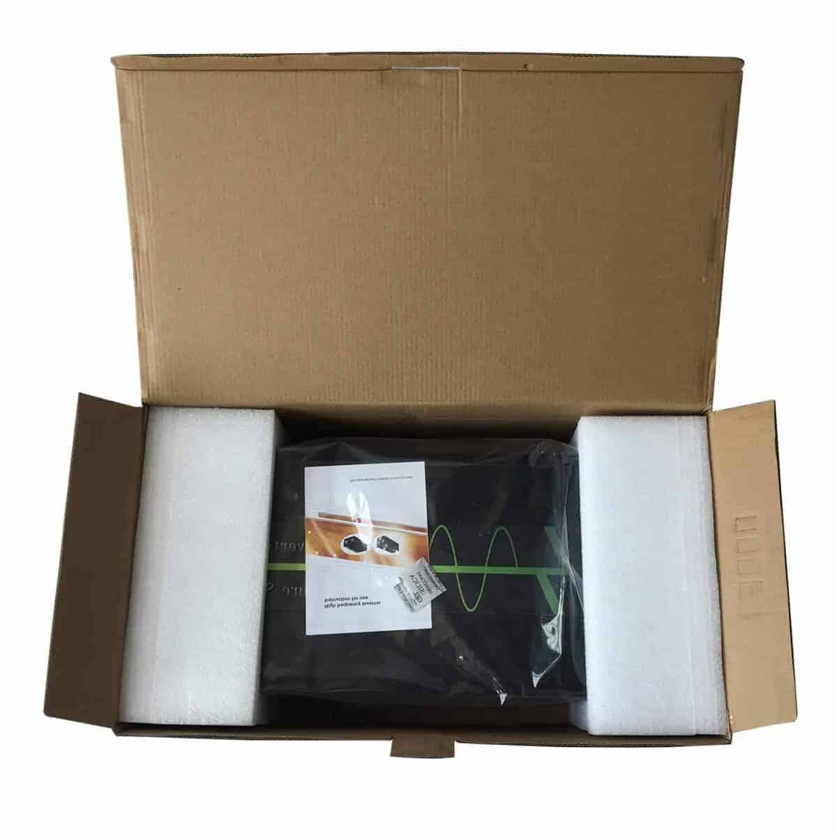 Detalles del producto: Entrada DC: 24V Rango de entrada DC: 21V-30V Consumo de corriente sin carga: 1A Eficiencia: 90% Salida AC: 110V~120V Regulación: 3% Frecuencia: 60Hz Toma: tipo de EE.UU 15A Alarma de baja tensión: 19V-21V Apagado por baja tensión: 18V-20V Sobrecarga: se apaga, se restablece manualmente Apagado por sobretensión: 31V Sobrecalentamiento: se apaga automáticamente la salida, protección contra sobretensión. Formas de enfriamiento: el ventilador funcionará cuando la temperatura supere los 45 grados centígrados. Precauciones: Por favor, utilice los cables de batería estándar que enviamos, o una salida de potencia completa no puede estar garantizada. Y los fusibles de repuesto en el paquete solo se utilizan cuando los originales se queman por accidente. Por favor, no conecte el inversor con la corriente eléctrica, y la conexión inversa de positivo y negativo también está prohibida. Por favor, no sobrecargue. Si sus aplicaciones son cargas inductivas, elija inversores cuya potencia continua sea de 3-7 veces mayor que los vatios de sus electrodomésticos. Si desea alimentar un refrigerador, le sugerimos que utilice un inversor de potencia 10 veces mayor. Por favor, apague la carga primero y luego apague el inversor. Y como hay una función de arranque suave, por favor encienda el inversor primero y luego encienda sus cargas, o la salida puede no ser estable en los primeros segundos. Para una luz roja intermitente, es un recordatorio para que note que la tensión de entrada es un poco alta, puede ignorarlo. Si la entrada es demasiado alta, el inversor se apagará automáticamente. Asegúrese de que su batería esté completamente cargada antes de usarla. La tensión de salida se puede ajustar en un pequeño rango. Si recibe nuestro inversor y tiene algún problema, por favor avísenos.