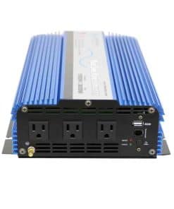 AIMS Power PWRI150012120S Inversor de Onda Sinusoidal, 1500W de Potencia Continua, Entrada de 12V DC, Onda Sinusoidal Pura, Triple Tomas de Corriente Alterna, Ventiladores de Enfriamiento Duales Controlados Térmicamente, Protección de Cortocircuito, Azul