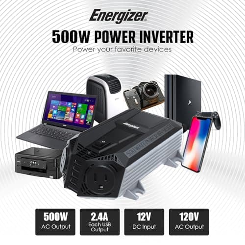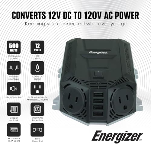Inversor de energía Energizer de 500 vatios, 12V DC a 110V