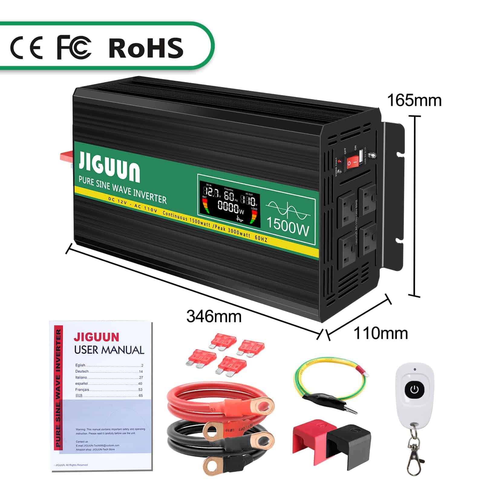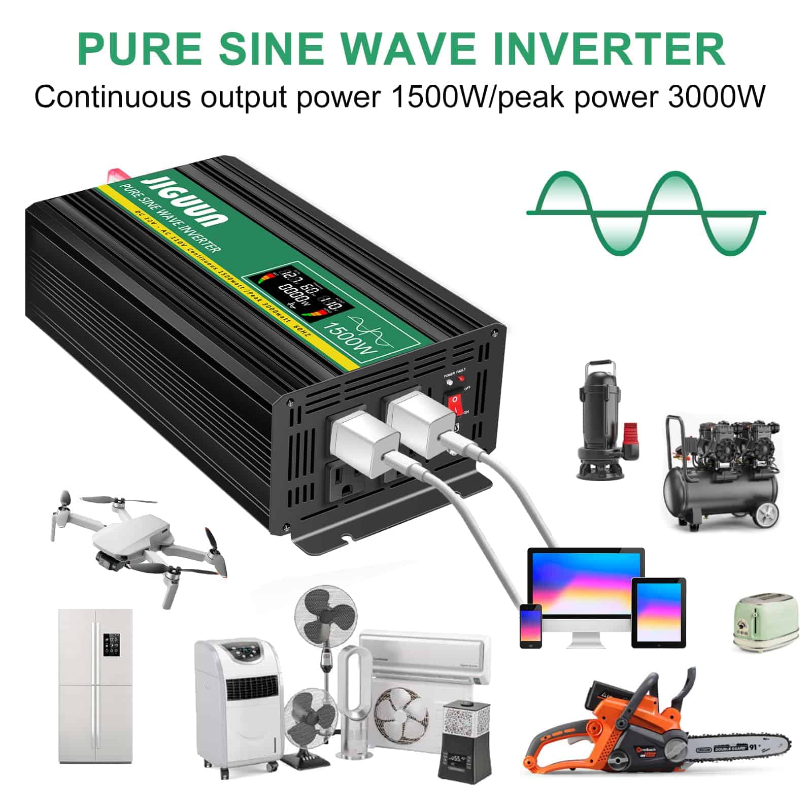Inversor de Energía Onda Sinusoidal Pura JIGUUN de 1500