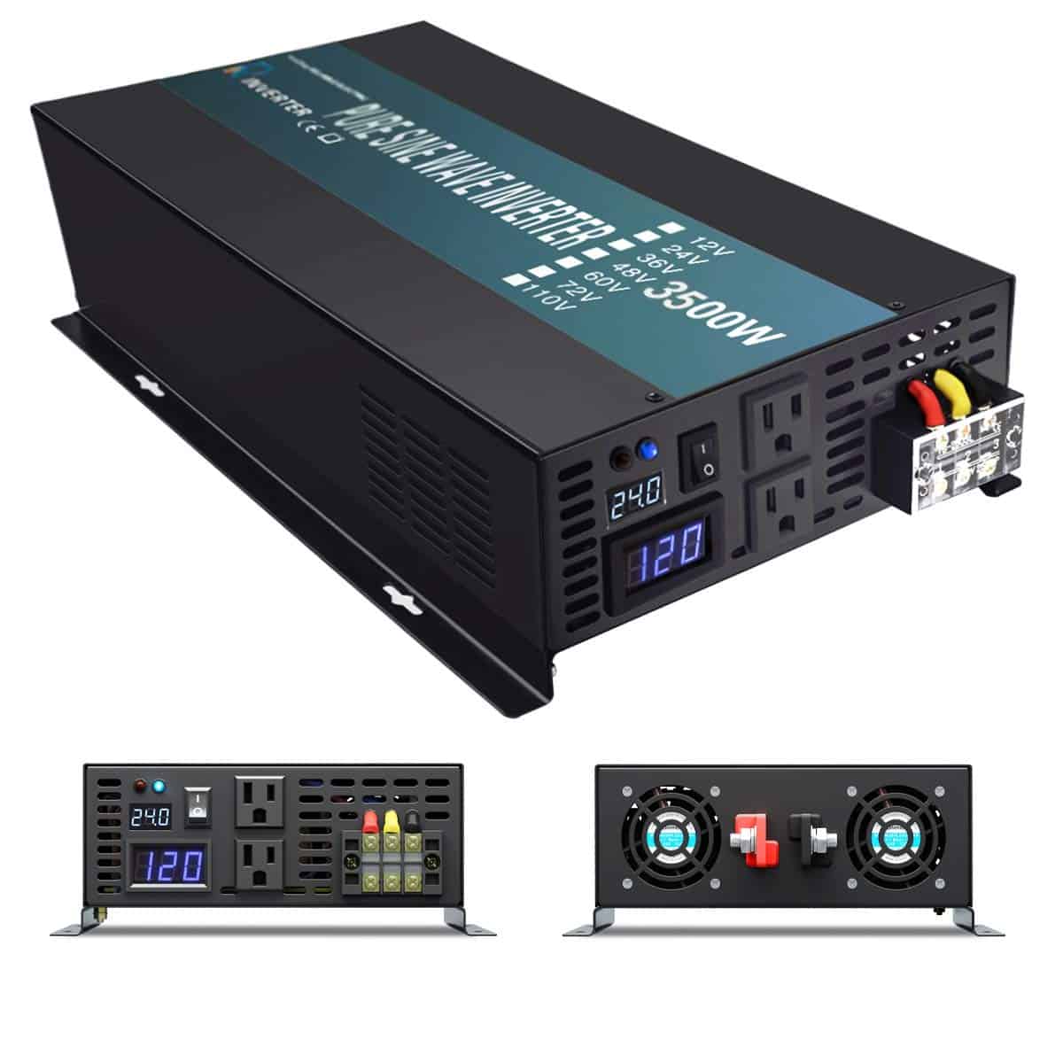 Acerca de nosotros: Fabricante profesional de inversores de onda sinusoidal pura desde hace 8 años. Fábrica original, ofrecemos precios razonables y alta calidad, y respuesta rápida a sus preguntas dentro de las 24 horas. Detalles del producto: Material: Carcasa de hierro, Entrada de CC: 12V, Rango de entrada de CC: 10V-15V, Consumo de corriente sin carga: 2.5A, Eficiencia: 85%-90%, Voltaje de salida de CA: 120V, Regulación de CA: 3%, Frecuencia: 60Hz, Toma: Tipo USA de 15 amperios, Alarma de baja tensión: 9.5V-10.5V, Apagado por baja tensión: 9V-10V, Sobrecarga: se apaga, recupera manualmente, Apagado por sobre tensión: 15.5V, Sobrecalentamiento: Se apaga automáticamente la salida, protección contra sobretensión. Formas de enfriamiento: El ventilador funciona cuando la temperatura supera los 50 grados. Precauciones: 1. Utilice los cables de batería estándar que le enviamos, de lo contrario, no se garantiza la potencia de salida completa. Y los fusibles son solo piezas de repuesto. 2. No conecte el inversor a la red eléctrica, y también está prohibida una conexión invertida de positivo y negativo. 3. No sobrecargue. Si sus aplicaciones son cargas inductivas, elija inversores cuya potencia continua sea de 3-7 veces mayor que los vatios de sus electrodomésticos. Si desea encender un refrigerador, le sugerimos que utilice un inversor de potencia 10 veces mayor. 4. Apague la carga primero y luego apague el inversor. Y como hay una función de arranque suave, encienda primero el inversor y luego encienda sus cargas, o la salida puede no ser estable en los primeros segundos. 5. Si una luz roja parpadea, es un recordatorio para informarle que la tensión de entrada es un poco alta, puede ignorarla. 6. El voltaje de salida se puede ajustar en un rango pequeño.