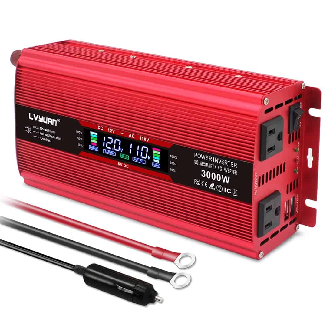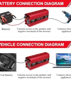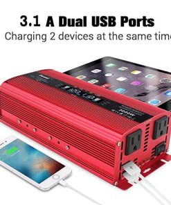 1. POTENTE: Convierte DC 12V a AC 110V 60Hz. Proporciona 1500 vatios de potencia de onda sinusoidal modificada continua. Con 2 salidas de CA y 2 puertos USB para carga multipropósito. Gran eficiencia alta: eficiencia de conversión > 90%. Si la potencia de salida del inversor es MAYOR a 150W, le recomendamos encarecidamente conectarlo a la batería con pinzas de cocodrilo incluidas en el paquete y no al encendedor de cigarrillos del coche, ya que su encendedor de cigarrillos del coche puede no soportar potencia superior a 150W.