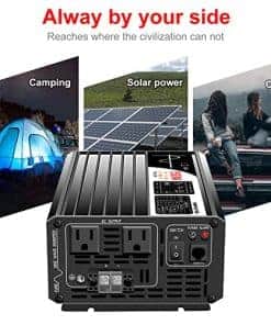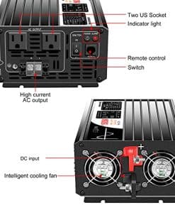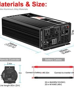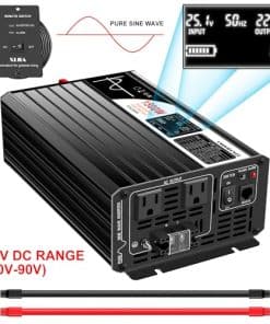 Potencia Continua: 1500W Potencia de Sobrecarga: 3000W Frecuencia: 60HZ ±0.5HZ Forma de Onda: Onda Senoidal Pura Regulación de AC: THD 3% (Carga Lineal) Eficiencia de Salida: 92% Voltaje de Entrada: DC72V Voltaje de Salida: 120V AC ±5% Rango de Voltaje DC: 60V-90V Apagado por Bajo Voltaje: 60V Apagado por Sobrevoltaje: 90V Recuperación de Bajo Voltaje: 60V Recuperación de Sobrevoltaje: 90V Temperatura de Trabajo: -10°C a +50°C Temperatura de Almacenamiento: -30°C a +70°C Tamaño: 365x165x85(mm) Peso Neto/Bruto: 3.3/3.5(kg) Inicio: arranque suave