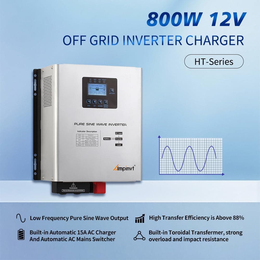 Inversor de Onda Sinusoidal Pura Ampinvt 800W con Cargador