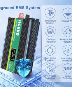 4. Sistema de Protección Integral El inversor JIGUUN está diseñado con protección integral. El sistema BMS mejorado puede proteger completamente el equipo, apagado por sobrecalentamiento, protección automática de sobrecarga, protección de sobretensión y subtensión, alarma sonora de baja tensión, protección contra cortocircuitos, protección de polaridad inversa, terminal de tierra de CA, no es necesario preocuparse por que la máquina se queme o explote. Adecuado para automóvil, RV, hogar, viajes, campamentos, navegación, emergencias, etc.