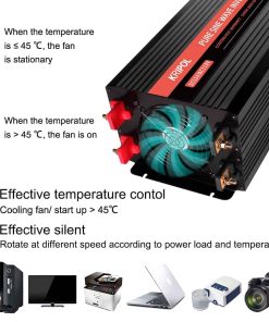 3. Sistema de Protección Integral de 7: Protección contra bajo voltaje, protección contra sobre voltaje, protección contra sobrecarga, protección contra sobre temperatura, protección contra cortocircuitos, terminal de tierra AC, protección contra conexión invertida. Y hay un sistema de enfriamiento por ventilador que se activa cuando la temperatura supera los 45°C, para que pueda usar productos eléctricos con tranquilidad.