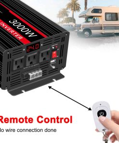 Inversor de Onda Sinusoidal Pura de 3000 vatios JIGUUN, Convertidor de Energía 24V DC a 110v/120v AC, Inversor para Coche con 3 Tomas de Corriente AC y 1 Puerto USB para Camping en RV, Hogar y Exteriores(3000W-24V) es la solución perfecta para obtener energía confiable y de alta calidad en cualquier lugar. Con una potencia nominal continua de 3000W y pico de 6000W, este inversor ofrece una salida limpia y suave que es ideal para cargar equipos sensibles. Su diseño de pantalla LED le permite monitorear fácilmente el voltaje de entrada y salida, la frecuencia de salida y el estado de uso en tiempo real. Además, cuenta con un sistema de protección integral que incluye protección contra sobrecarga, sobretemperatura, cortocircuito y más. La carcasa de aleación de aluminio proporciona una protección duradera, mientras que los nuevos terminales de CC permiten una fácil conexión de cables más gruesos. El inversor viene con un juego completo que incluye cables de batería y fusibles. Con una garantía de un año y un servicio al cliente excepcional, este inversor es la elección perfecta para todo, desde acampar en el bosque hasta viajar en su RV.
