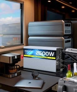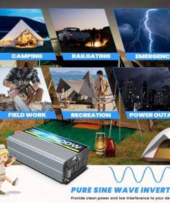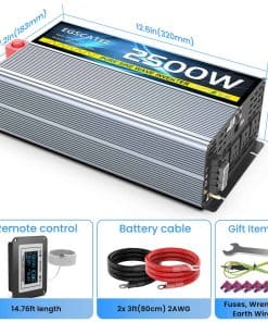 1. INVERSOR DE 2500W DE ONDA SINUSOIDAL PURA BIEN CONSTRUIDO/ POTENCIA DE PICO 5000W – Tecnología avanzada de onda sinusoidal pura, convierte la corriente estable de calidad a sus dispositivos electrónicos y electrodomésticos del hogar. Haga funcionar los equipos de manera suave, sin extraños zumbidos ni cuando sus dispositivos electrónicos están encendidos. Más conectores eléctricos permiten que más de sus máquinas reciban energía, ya sea que esté acampando en el RV, un viaje por carretera, vida en furgoneta o incluso viaje.
