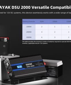El inversor ERAYAK DSU2000 es un inversor de onda sinusoidal pura de alto rendimiento diseñado para convertir corriente continua (DC) en corriente alterna (CA). Proporciona hasta 2000 vatios de potencia de salida estable, lo que lo hace adecuado para una amplia gama de dispositivos eléctricos, especialmente aquellos que requieren fuentes de alimentación de alta calidad. Este inversor está equipado con múltiples características de protección, como protección contra sobrecargas, protección contra sobrecalentamiento y protección contra cortocircuitos, lo que garantiza un funcionamiento seguro y confiable de los dispositivos conectados. Diseñado pensando en la conveniencia del usuario, el ERAYAK DSU2000 cuenta con una pantalla LCD que proporciona información en tiempo real sobre el voltaje de entrada y salida, la potencia y otros datos esenciales, lo que ayuda a los usuarios a monitorear de manera más efectiva el estado de sus dispositivos. Además, cuenta con una función de control remoto que permite a los usuarios operar el inversor a distancia, agregando flexibilidad a su uso. El ERAYAK DSU2000 es versátil y adecuado para varios entornos, incluyendo actividades al aire libre, campamentos, vehículos, embarcaciones o como fuente de energía de emergencia en el hogar. Su salida de onda sinusoidal pura garantiza una calidad de energía comparable a la electricidad de la red, protegiendo los dispositivos conectados de las fluctuaciones de energía. En resumen, el ERAYAK DSU2000 es un inversor multifuncional, eficiente y fácil de usar, aplicable en una amplia gama de escenarios. Ofrece una solución de energía estable y confiable para los usuarios, especialmente en el mercado de los Estados Unidos, donde se valora altamente un suministro de energía constante y de alta calidad.
