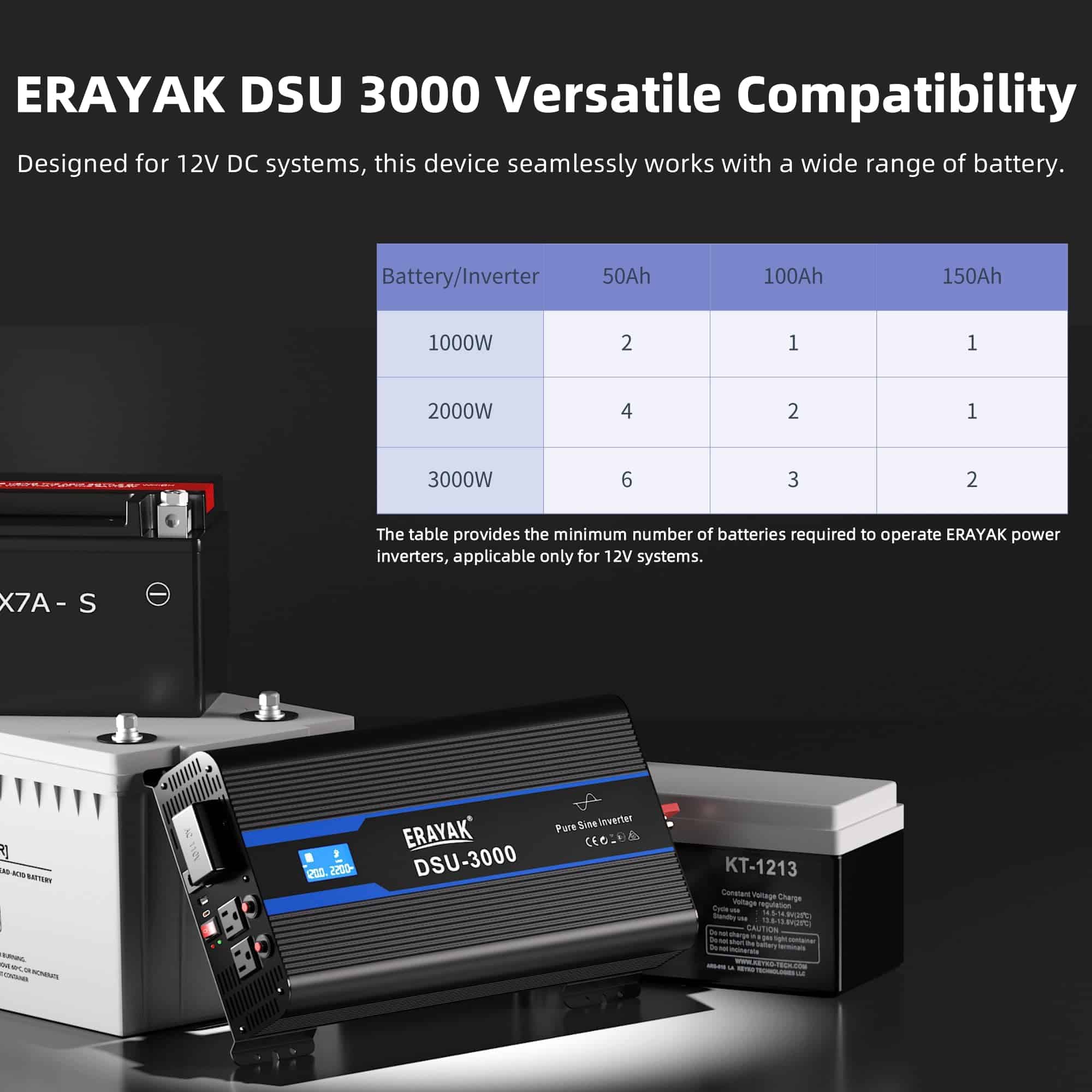 Inversor de Onda Sinusoidal Pura Erayak 3000W 12V DC a 120V