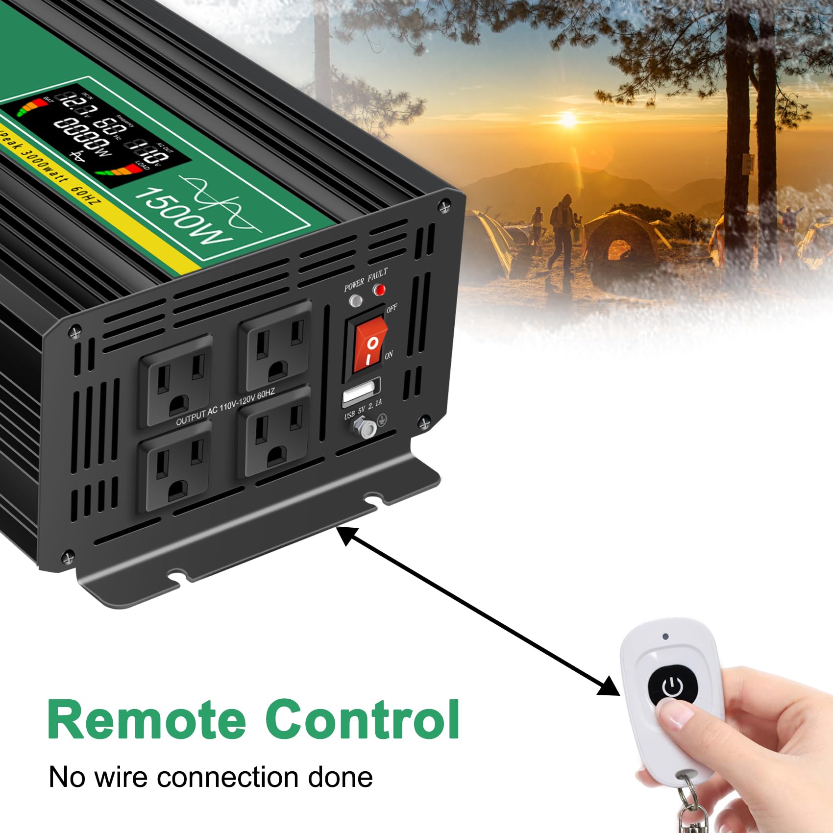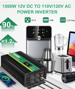 Potente inversor de onda sinusoidal pura de CC a CA de 12 V a 120 V, con 1500W continuos y 3000W de pico durante el arranque de la carga, eficiencia de conversión >90%, lo que reduce la pérdida de conversión. Este inversor proporciona una calidad de corriente alterna similar a la de la red eléctrica, lo que prolonga la vida útil de sus dispositivos electrónicos y funciona de manera más suave, fresca y silenciosa con cargas inductivas altas y sin sonidos extraños.