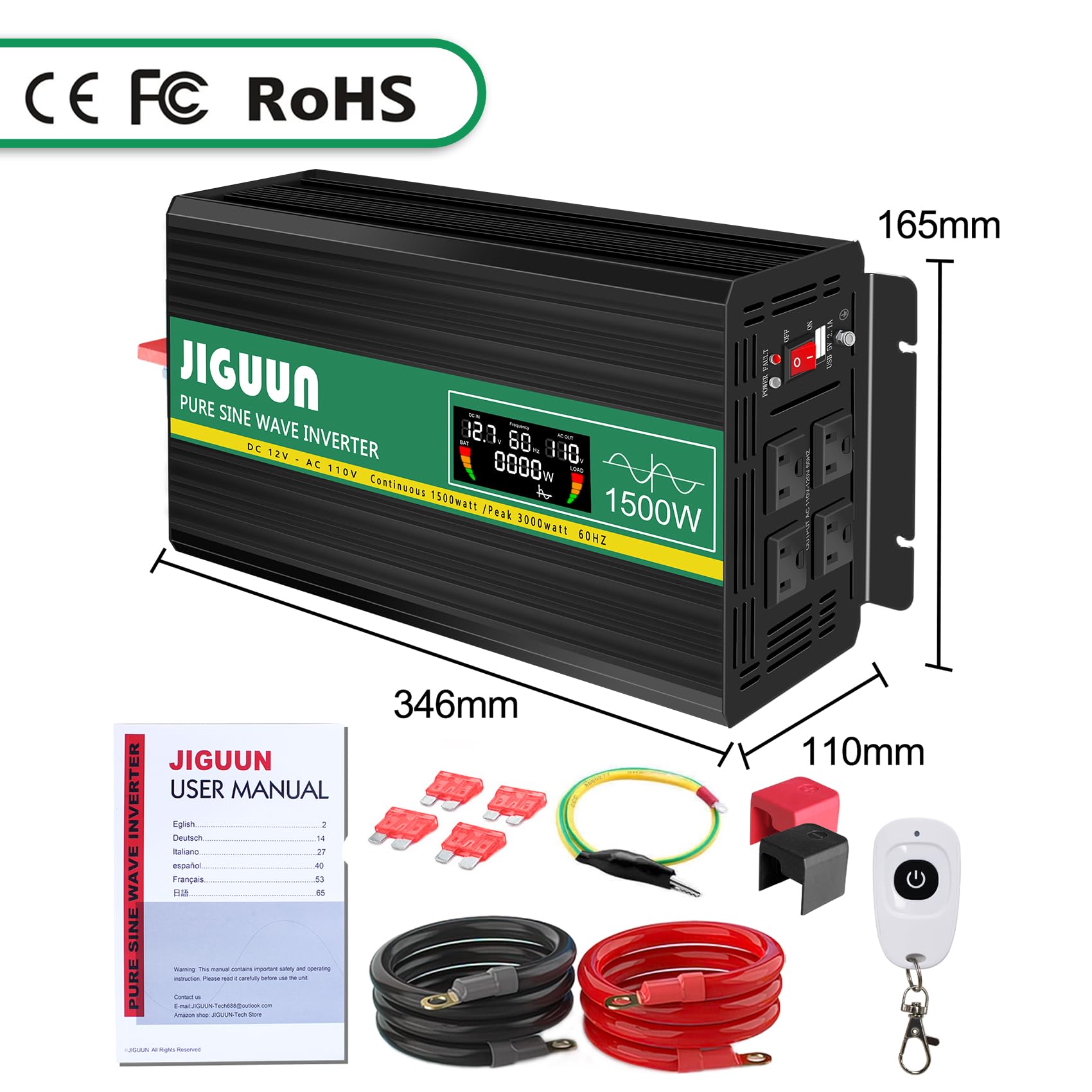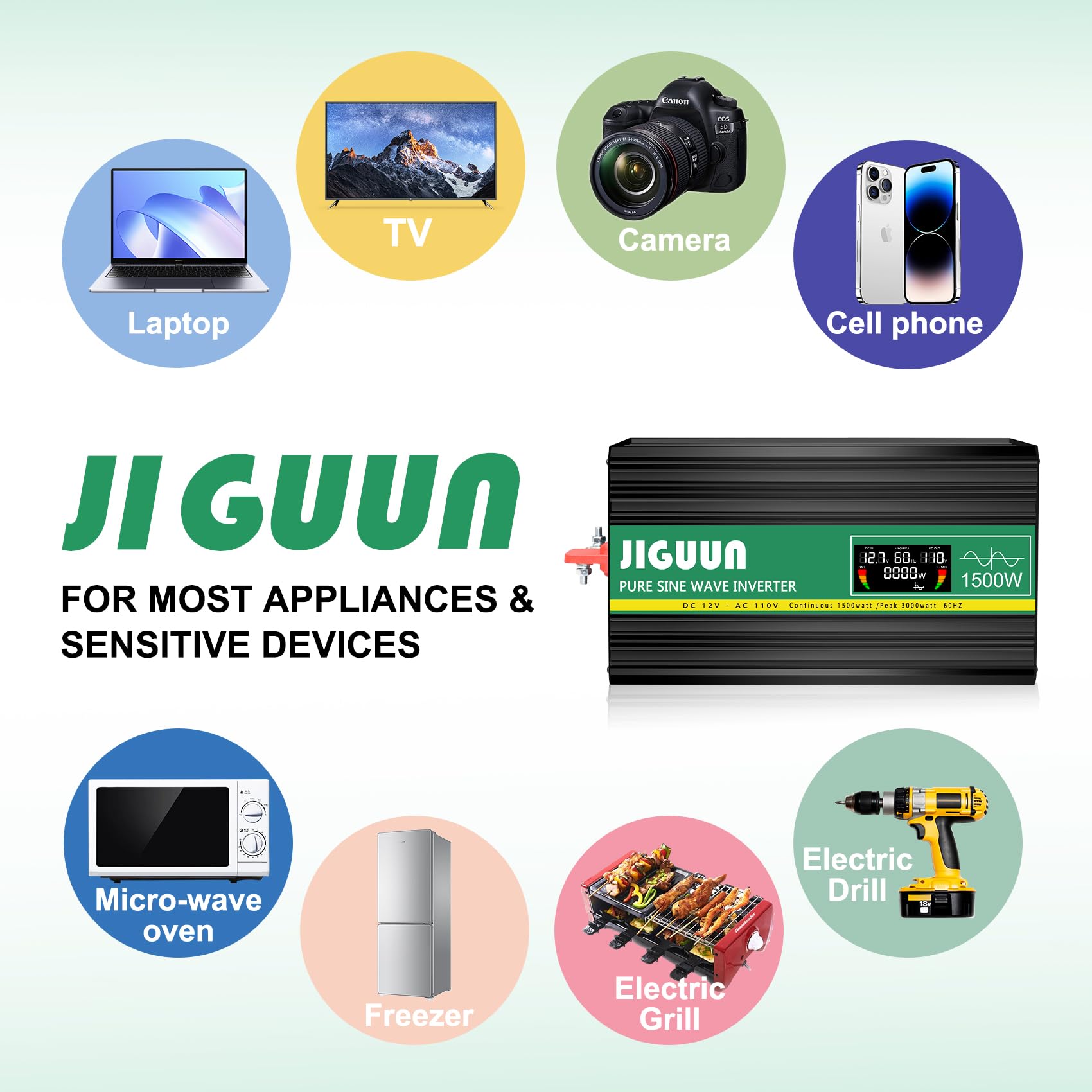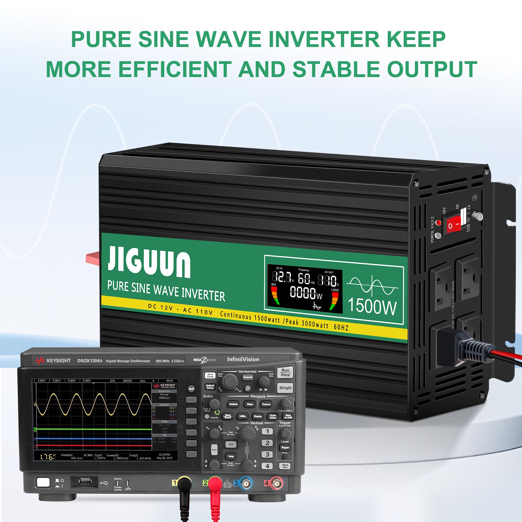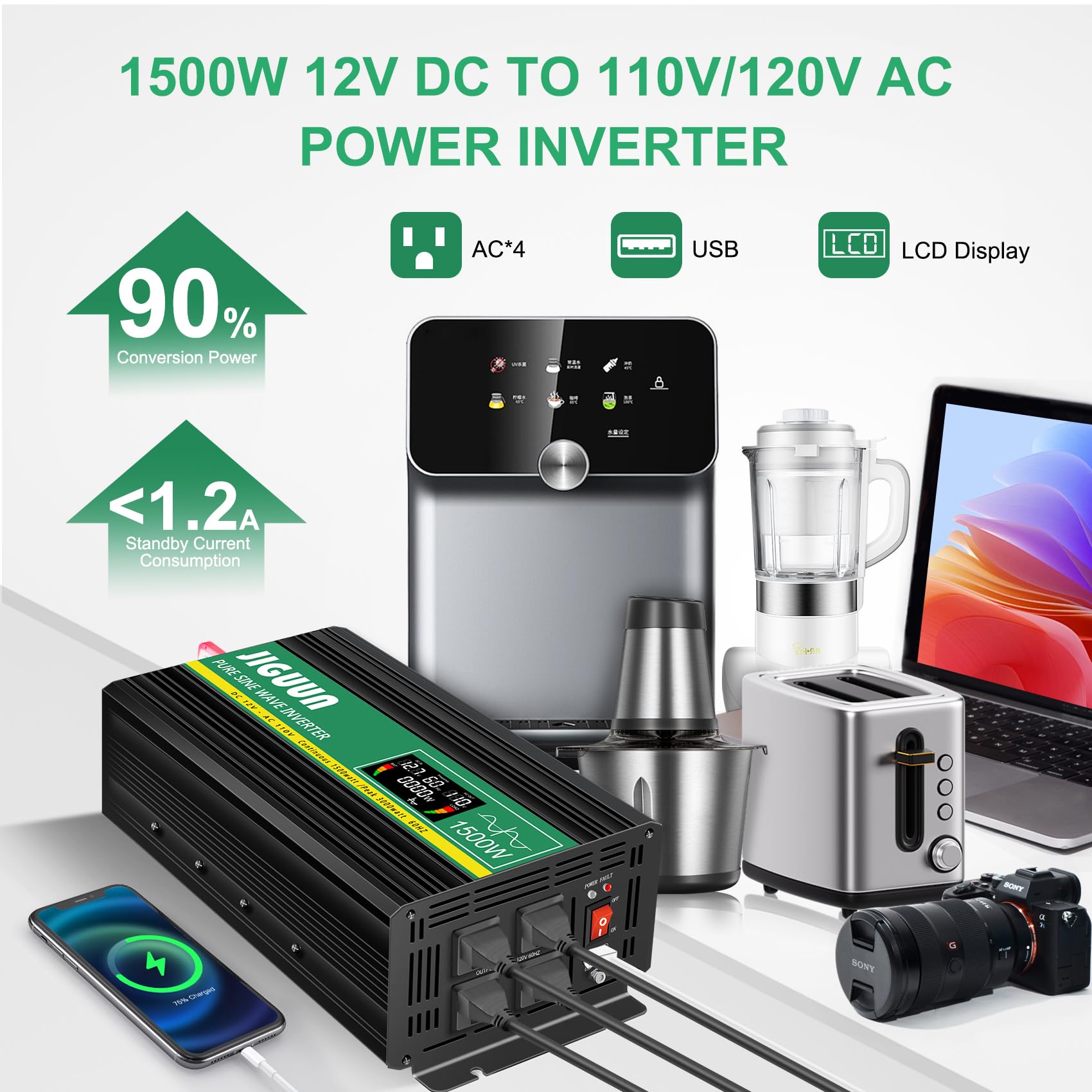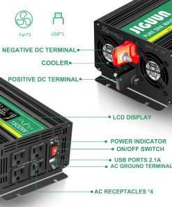 Inversor de Onda Sinusoidal Pura JIGUUN 1500W, de 12V a