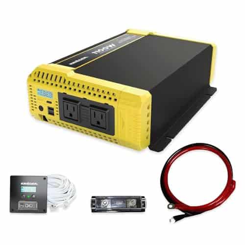 La instalación es sencilla, con dos puertos USB de 5V/2.1A, 2 tomas de corriente alterna y 1 bloque de terminales de corriente alterna integrados, junto con dos cables de 6 AWG de 3 pies y un control remoto cableado de 19.8 pies. Cada compra incluye un kit de instalación gratuito para una configuración rápida y sin complicaciones.