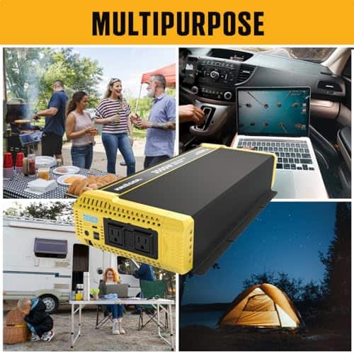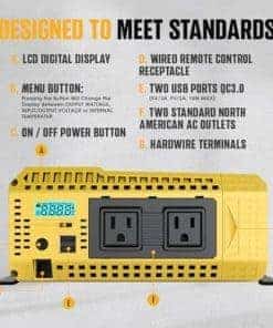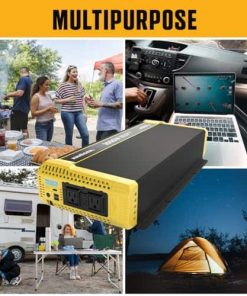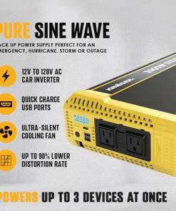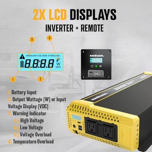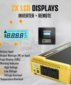 3000 vatios de potencia continua de onda sinusoidal pura, 6000 vatios de potencia máxima, inversor de energía de onda sinusoidal pura KP3000 convierte 12V DC a 120V AC, conecta los cables de batería DC directamente a tu batería de 12V y tendrás energía en movimiento. Tu necesidad de viaje definitiva – Ya sea acampando al aire libre o teniendo viajes familiares, el inversor de onda sinusoidal pura Krieger es tu mejor amigo en la carretera. Con 3000 vatios de potencia continua y 6000 vatios de potencia máxima. Protección general – ¡Te tenemos cubierto! El inversor de energía de onda sinusoidal pura Krieger tiene todas las protecciones que necesitarás: Sobrecarga, Temperatura, Cortocircuito que se pueden ver en la pantalla LCD. El ventilador de enfriamiento ultra silencioso es una característica adicional para que no te preocupes por operar un inversor de energía ruidoso. Instalación sin problemas – ¡Escuchamos tus problemas de automóvil, así que estamos presentando nuestra versión de un inversor RV de 12 voltios todo incluido! El kit de instalación del inversor de onda sinusoidal pura Krieger de 3000 vatios viene con control remoto cableado, kit de fusibles ANL y cables de batería de 3 pies incluidos para una instalación rápida, sencilla y sin problemas. Carga fácil – Este robusto inversor de 12v de Krieger cuenta con dos puertos USB para convertir fácilmente la energía para tu iPhone, iPad, teléfono inteligente Android, portátil, televisor, reproductor de DVD, electrodomésticos domésticos, electrónicos y consolas de juegos.