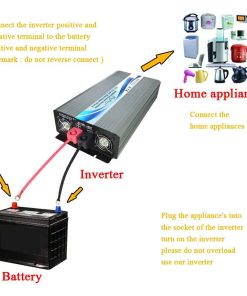 Detalles del producto: Entrada DC: 48V Rango de entrada CC: 42V-58V Consumo de corriente en vacío: 0.8A Eficiencia: 90% Salida de CA: 110V ~ 120V CA Regulación: 3% Frecuencia: 60Hz Toma: tipo estadounidense Alarma de voltaje bajo: 41V-43V Apagado por voltaje bajo: 39V-41V Sobrecarga: apagado, recuperación manual Sobretensión Apagado: 59V Sobrecalentamiento: apagar la salida automáticamente, protección contra sobretensión Formas de enfriamiento: el ventilador de refrigeración funcionará cuando la temperatura supere los 45 grados centígrados Precauciones: 1. Utilice los cables de batería estándar que enviamos, o no se garantiza una salida de energía completa. Y los fusibles de repuesto en el paquete solo se utilizan cuando los originales se queman accidentalmente. 2. No conecte el inversor con la energía de la red, y también se prohíbe una conexión inversa de positivo y negativo. 3. No sobrecargue. Si sus aplicaciones son cargas inductivas, elija inversores cuya potencia continua sea de 3 a 7 veces mayor que los vatios de sus electrodomésticos. Si desea encender un refrigerador, le sugerimos que use un inversor de potencia 10 veces mayor. 4. Apague la carga primero y luego apague el inversor. Y como hay una función de arranque suave, encienda primero el inversor y luego sus cargas, o la salida puede no ser estable en los primeros segundos. 5. Para un destello de luz roja, es un tipo de recordatorio para informarle que el voltaje de entrada es un poco alto, puede no hacer caso de él. Si la entrada es demasiado alta, el inversor se apagará automáticamente. Asegúrese de que su batería esté completamente cargada antes de usarla. 6. El voltaje de salida se puede ajustar en un rango pequeño.