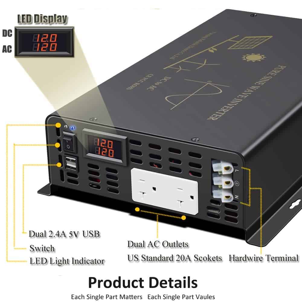 Inversor de Onda Sinusoidal Pura WZRELB 5000W DC 12V a AC