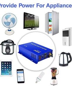 El inversor de potencia de onda sinusoidal pura XYZINVT diseñado como un generador de energía portátil para energizar múltiples elementos para viajes en automóvil y uso doméstico. Como respaldo, es ideal para emergencias por cortes de energía. Siempre puede generar la energía cuando y donde la necesite. Características 1. Baja interferencia: suministra energía de onda sinusoidal pura ultra limpia que es igual que la energía de la red de CA suministrada por su compañía eléctrica. Mejora el rendimiento del equipo de CA con tecnología de baja interferencia, buena elección para televisión, estéreo, etc. Ideal para cargas sensibles como instrumentos de alta precisión. 2. Bajo consumo de energía en modo de reposo: reduce la pérdida del circuito y mejora la eficiencia de los electrodomésticos eléctricos. 3. Aplicación fuera de la red: ideal para uso de emergencia siempre y cuando tenga su batería completamente cargada. Puede generar su propia electricidad para su casa donde haya cortes de energía o apagones. 4. Dos tomas AC de EE. UU. Y pantalla LED digital: alimente diferentes dispositivos al mismo tiempo sin problemas y monitoree los cambios de voltaje en cualquier momento. 5. Operación fácil: se puede mover fácilmente a diferentes unidades con conexiones rápidas. También se puede utilizar en sistemas solares y eólicos. Cargue su batería con el panel solar a través del controlador de carga solar. simplemente conecte y juegue. Especificaciones Entrada de CC: 24V Rango de entrada de CC: 21V-30V Corriente de consumo en vacío: 1,5A Eficiencia: 85%-90% Voltaje de salida de CA: 120V Regulación de CA: 3% Frecuencia: 60Hz Enchufe: Tipo de EE. UU. Alarma de voltaje bajo: 19.5V-21.5V Apagado de voltaje bajo: 18.5V-20.5V EL PAQUETE CONTIENE: 1x Inversor de 2000W, 2x juego de cables de batería, 1x Manual de usuario, Varias fusibles, nuestra garantía de 12 meses y servicio al cliente del 100%.