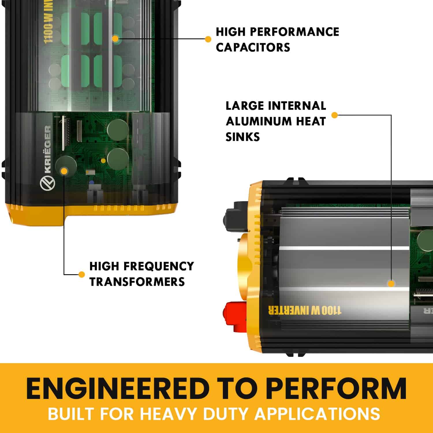El inversor de coche Krieger de 1100 vatios alimenta electrodomésticos pequeños, refrigeradores, microondas, herramientas eléctricas y más.