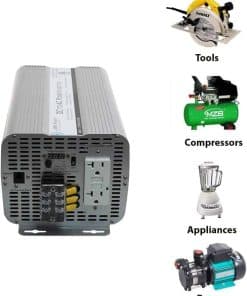 1. POTENTE: 3000W de potencia continua máxima, 6000W de sobrecarga, tecnología de arranque suave, control remoto opcional disponible. Bloque terminal de conexión directa de CA.