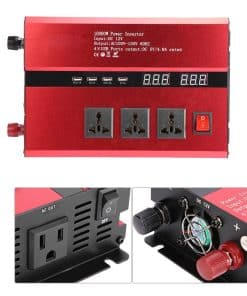 Especificación: Condición: 100% Nuevo Tipo de artículo: Inversor Solar Material: Aleación de Aluminio Color: Rojo Tipo Opcional: 12V a 110V, 24V a 110V Potencia Pico Opcional: 3000W, 4000W, 5000W, 10000W Potencia Nominal: 500W, 1000W, 1500W, 2500W Pantalla Digital: Voltaje de Entrada/Salida Voltaje de Entrada: DC 12V/24V Voltaje de Salida: 110V Salida USB: 5VDC-2.1A/1A / 2.4A/1A Corriente en Vacío: 0.9A Eficiencia de Conversión: Mayor al 90% Forma de Onda: Onda Sinusoidal Modificada Función de Protección: Sobrecarga, sobrecalentamiento, alto voltaje, bajo voltaje, conexión inversa y cortocircuito, control de temperatura inteligente, interfaz de salida USB, enchufe universal GB, doble pantallas, que puede ser utilizado para aparatos de baja potencia (excepto electrodomésticos de carga inductiva y productos de motor). Lista de Paquetes: 1 x Inversor Solar 2 x Cable 1 x Manual en Inglés