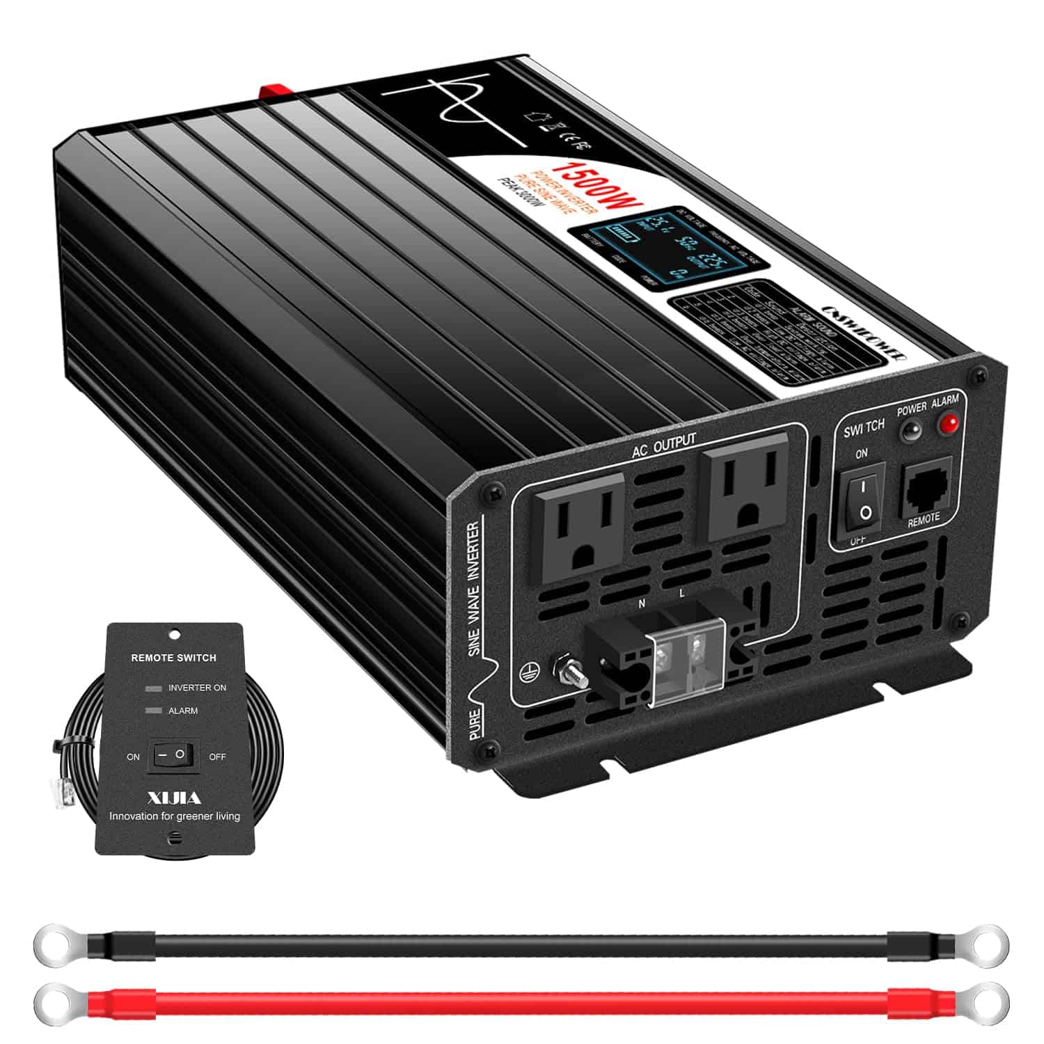 El inversor de potencia XIJIA proporciona una potencia de onda senoidal pura limpia, mucho mejor que la onda senoidal modificada. Un inversor de onda senoidal pura real puede proporcionar una potencia de salida de alta calidad y estable, mejor para proteger su equipo de CA. Es recomendado por la mayoría de los fabricantes de herramientas inalámbricas que se utilice un inversor de onda senoidal pura para garantizar una larga vida útil de la batería. La pantalla LCD y el control remoto con cable de 5 metros facilitan el control del encendido y apagado del inversor, así como la observación del voltaje de entrada y la potencia de salida. Todos los grandes mosfets importados con una capacidad de conducción fuerte garantizan un rendimiento óptimo. Ampliamente utilizado en interiores y exteriores, es muy adecuado para su uso en RVs, embarcaciones y situaciones de emergencia por cortes de energía. Las 2 tomas de corriente de CA permiten un uso de emergencia multifuncional durante vacaciones, viajes de negocios y campamentos. Con una carga continua de 1500W, este inversor puede hacer frente a situaciones de emergencia como huracanes, tormentas y cortes de energía. Además, cuenta con múltiples protecciones, como protección de corte por bajo voltaje, protección de sobretensión, protección de fusible inverso, protección de corte de alto voltaje, protección de corriente excesiva, protección de apagado por sobrecarga, protección de fusibles de cortocircuito, protección de producción térmica excesiva y ventilador de refrigeración con control de temperatura inteligente. Incluye en el paquete 1 inversor de potencia de 2000W, 1 interruptor remoto, 4 fusibles, manual del usuario y garantía de piezas de 1 año.
