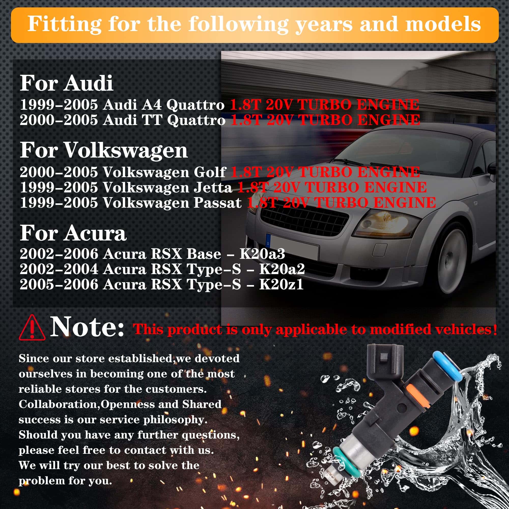 1. Aplicación Este producto solo es aplicable a vehículos modificados! Compatible con Audi A4 Quattro 1.8T 1999-2005 Audi TT Quattro 1.8T 2000-2005 Volkswagen Golf 1.8T 2000-2005 Volkswagen Jetta 1.8T 1999-2005 Volkswagen Passat 1.8T 1999-2005 Acura RSX K20 Type-S Coupe 2-Door 2.0L ( Para obtener más modelos, consulte los detalles en ajuste o la información a continuación).