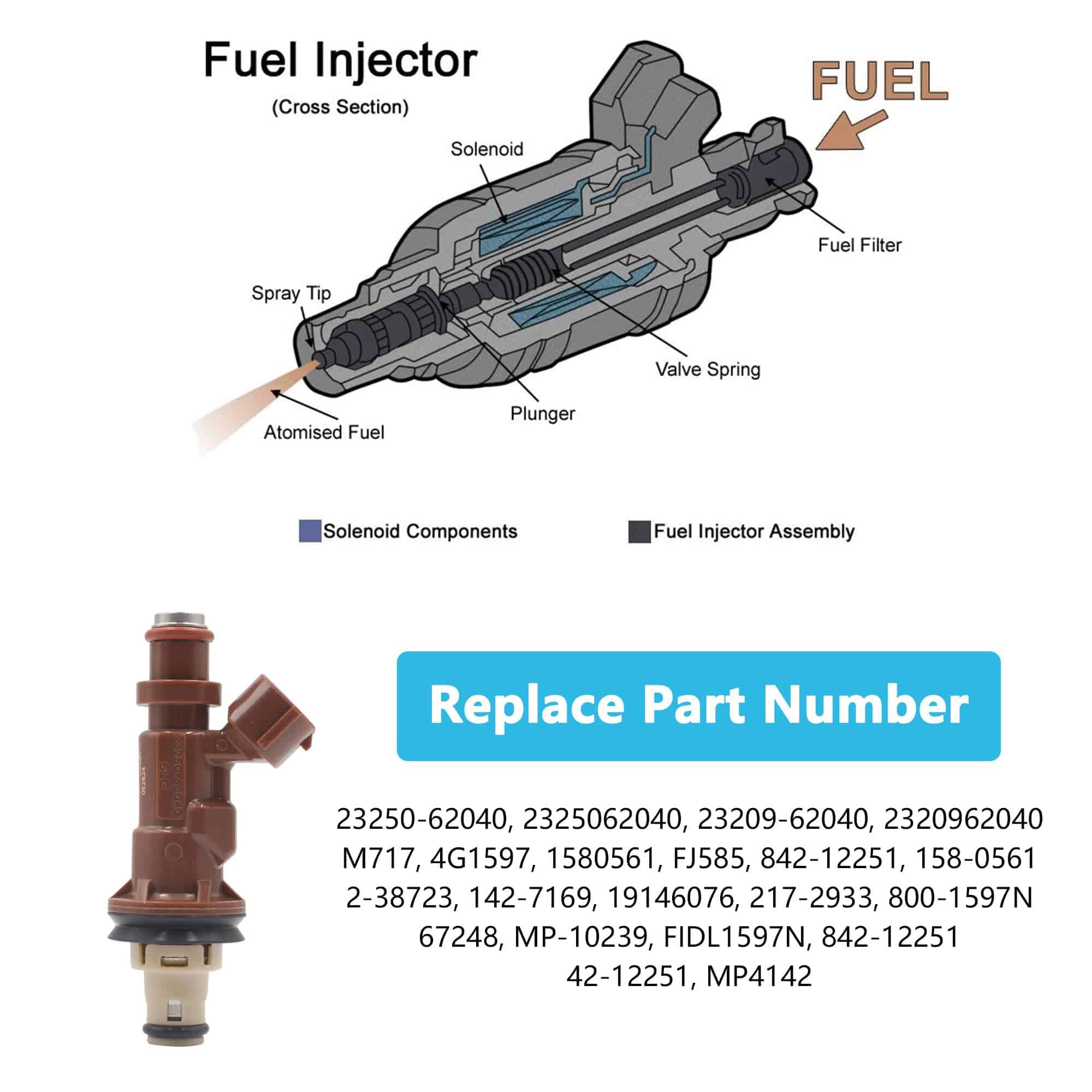Consulte la descripción corta para obtener información detallada sobre la compatibilidad, número OE de referencia, ventajas, función y nota sobre los inyectores de combustible Yezoauto. Este producto es ideal para Toyota Tundra, Tacoma y 4Runner con motores V6 3.4L. Los sistemas de inyección de combustible son fundamentales para un rendimiento óptimo del motor y una mayor eficiencia de combustible. Además, el servicio posventa garantiza una solución satisfactoria a cualquier problema que pueda surgir en el uso de los inyectores de combustible.