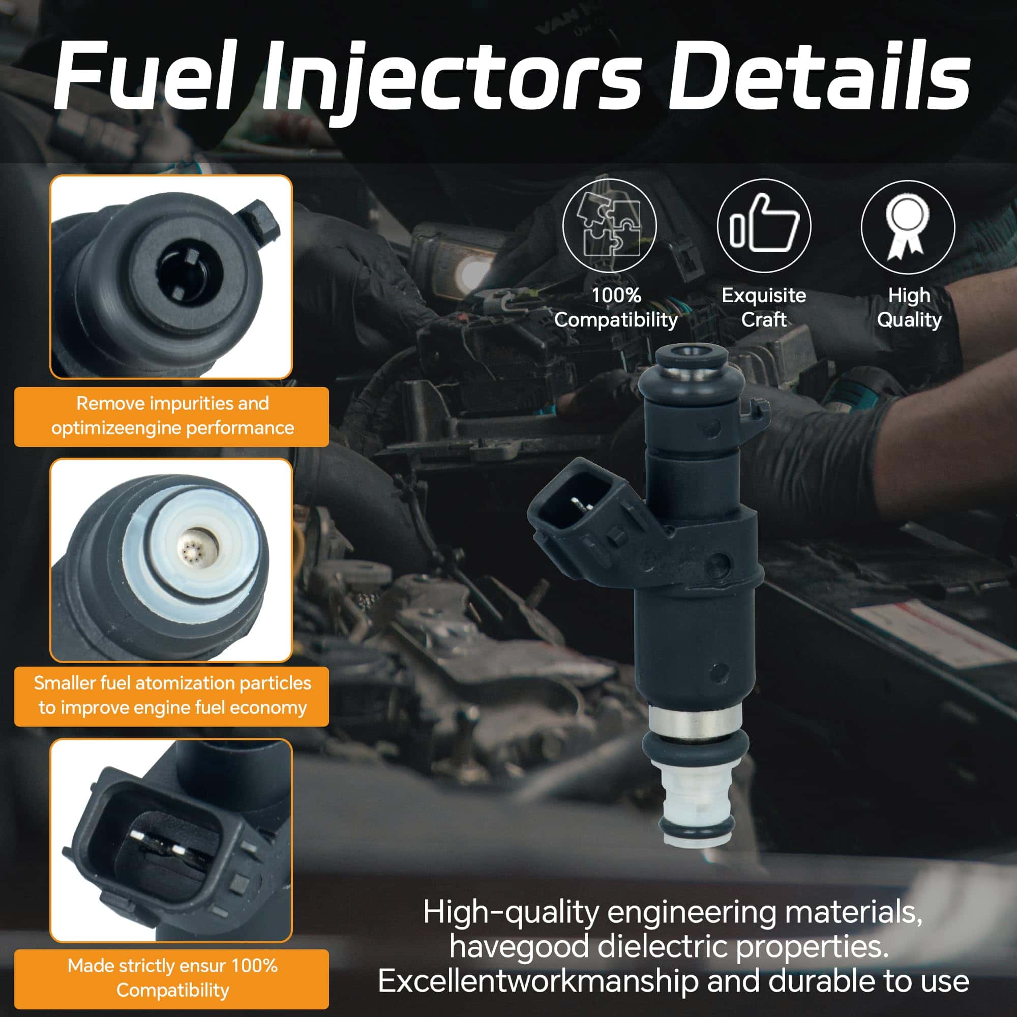 Los Inyectores de Combustible AdvanEX de 8 orificios son compatibles con varios modelos de Honda y Acura, incluyendo el ELEMENT, ACCORD, CR-V y RSX. Con un diseño de alta precisión, estos inyectores pueden controlar el tiempo, la cantidad y la forma de inyección de combustible, asegurando una combustión completa y mejorando el rendimiento del motor. Fabricados con materiales de calidad resistente a altas temperaturas y presiones, estos inyectores han pasado estrictos controles de calidad para garantizar su durabilidad y funcionamiento óptimo. Ante cualquier problema, nuestro equipo está listo para brindarle una solución satisfactoria. Confirme la compatibilidad con su vehículo antes de la compra para una experiencia sin complicaciones.