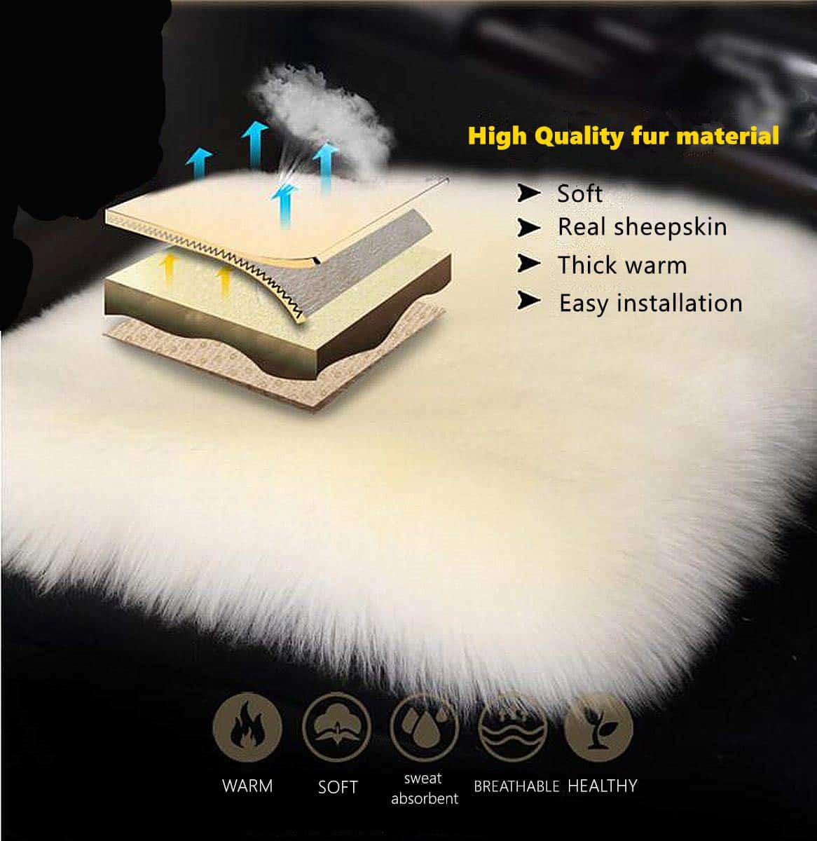 La almohadilla de asiento de automóvil INZOEY utiliza lana de oveja real de Australia como materia prima. La piel de oveja y la lana real tienen características de cálido, duradero, transpirable, ecológico y saludable. La lana larga también puede hacer que tu automóvil sea más lujoso. Si deseas mejorar tu automóvil, hacerlo más lindo y cálido para el invierno, esta almohadilla de asiento sería la mejor elección para ti.