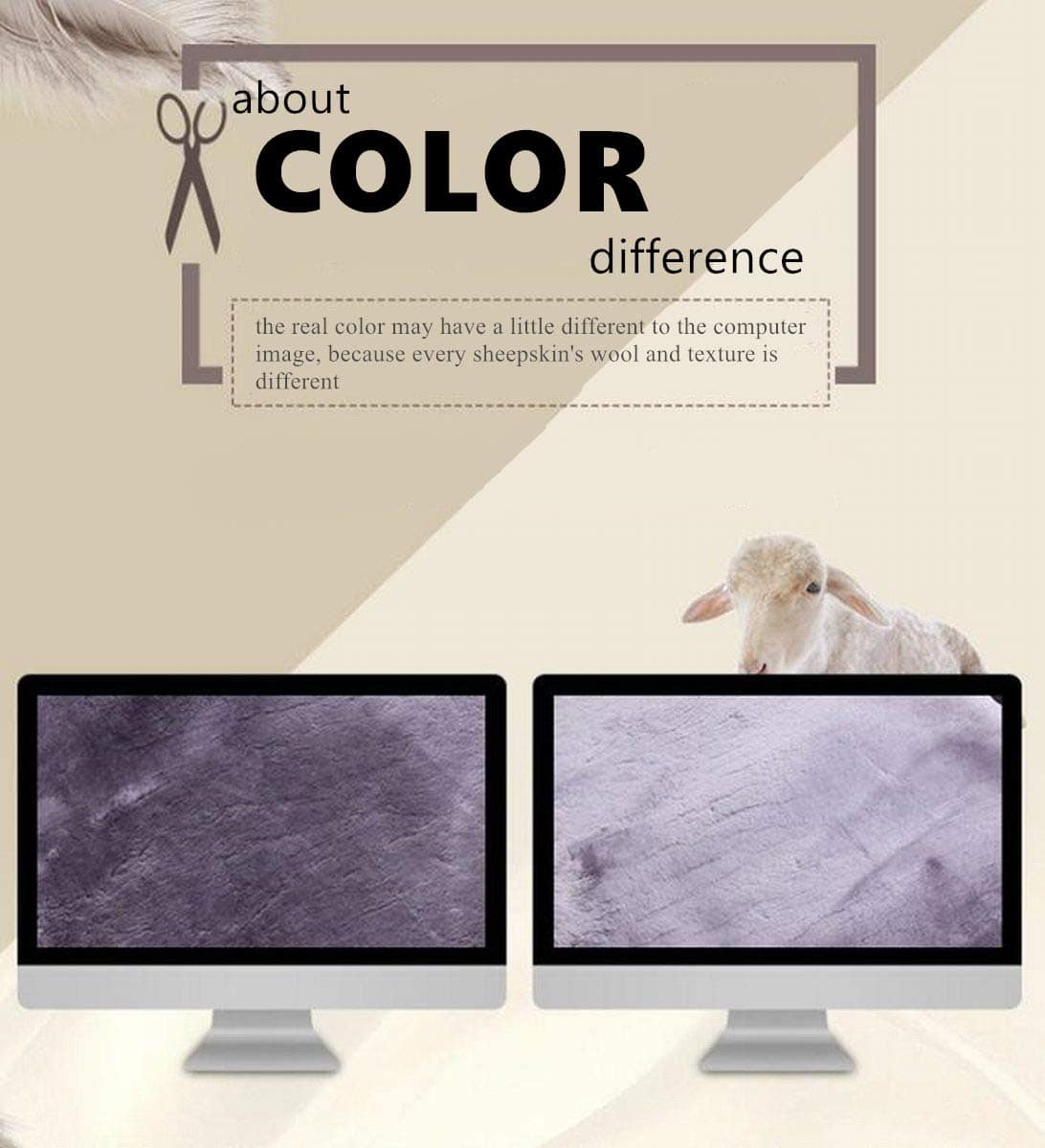 Todas las fotos de nuestra tienda son fotografiadas por fotógrafos profesionales, el color real de los productos puede ser un poco diferente a la imagen de la computadora, porque la lana y la textura de cada piel de oveja son diferentes, no podemos hacer que todos sean del mismo color. Si realmente te importa esto, cómpralo con precaución