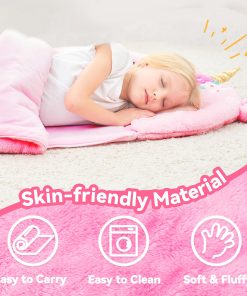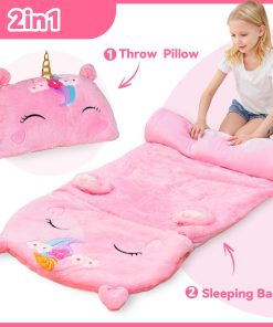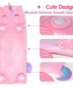 1. Tela Amigable con la Piel La bolsa de dormir de Unicornio está hecha con fibras de poliéster suaves y transpirables al 100%, asegurando un lugar acogedor y tranquilo para la siesta de tu pequeño. 2. Más Grande, Más Ancho, Más Grueso La colchoneta para dormir mide 70″x27″x2″, lo que es extra grande, ancho y grueso. Este tamaño proporciona una experiencia más cálida y cómoda para la guardería, preescolar, jardín de infantes y noches de pijama. 3. Se Convierte en una Almohada Esta bolsa de dormir tiene un diseño único 2 en 1 que le permite convertirse en una almohada. Cuando está guardada, parece un peluche con el que tu hijo puede abrazar y jugar. También se puede utilizar como un complemento para el dormitorio, sala de juegos o sala de estar de tu hijo. 4. Lavable en Lavadora ¡Mantener la bolsa de dormir limpia es muy fácil! Coloca la colchoneta en la lavadora en un ciclo suave con agua fría, luego sécalo a baja temperatura. Se recomienda usar solo detergente suave y evitar la lejía. 5. Elección de Regalo Cálida Sería una opción de regalo cálida para niñas y amantes de los unicornios. Adecuado para Navidad, Cumpleaños, Día del Niño y Día de San Valentín. ¡Este divertido y colorido saco de dormir será el centro de atención en la próxima noche de pijamas, lleva la aventura de dormir de tu hijo a cualquier lugar!