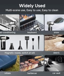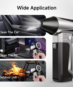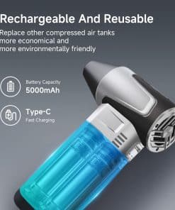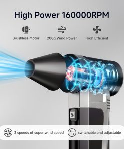 iRnergy Soplador de Aire Comprimido, Turbo Jet Portátil, Soplador de Aire de Alta Velocidad 160000RPM, Soplador de Aire Recargable Inalámbrico para Teclados Limpieza de Polvo Lluvia Nieve al Aire Libre 1. Velocidad de Aire Potente Ajustable – El soplador de aire comprimido eléctrico tiene una velocidad máxima de hasta 160,000 RPM, lo que lo convierte en un potente rendidor. El recolector de polvo tiene 3 velocidades ajustables para satisfacer diferentes necesidades. 2. Portátil de Mano y Recargable – Este soplador de aire eléctrico es recargable, no es necesario enchufarlo. Batería de auto capacidad, solo 2.5 horas de carga completa, peso ligero y tamaño pequeño de solo 0.51 libras, fácil de transportar y no ocupa espacio. 3. Económico y Duradero – Soplador de aire recargable con velocidad de viento potente, batería de alta capacidad incorporada, cable de carga Tipo-C incluido, viene con 3 boquillas y 2 cepillos, puede ser utilizado para viajes y actividades al aire libre, mejor experiencia. 4. Súper Turbo Ventilador Potente – Mini soplador de aire de mano, puede reemplazar al soplador de aire comprimido. Productos aprobados por las certificaciones CE FCC, puede estar seguro de que el uso del soplador eléctrico puede ser recargado una y otra vez para usar, para resolver los problemas de limpieza. 5. Amplia Gama de Usos – Adecuado para una variedad de escenas, se puede usar en interiores y exteriores para limpiar eficazmente todo tipo de polvo, productos electrónicos (limpiador de computadoras, soplador de teclados, limpieza digital), soplador de nieve portátil para el polvo automotriz. Puede soplar nieve y hojas, etc., cojín de aire inflable Picnic al aire libre Soplado de fuego, soplador de limpieza del hogar, ¡brindando una buena experiencia!