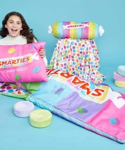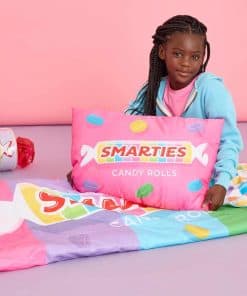Este saco de dormir súper lindo y acogedor con forro de fleece, con gráficos oficiales de Smarties, es tan brillante y divertido que podrías temer que te mantenga despierto. ¡Pero no temas, podrás disfrutar de tu cálido abrazo como nunca antes con este dulce suavito que incluye una almohada a juego! El saco de dormir mide 55″ de largo x 25″ de ancho y cuenta con cierre de cremallera y nuestro característico fleece super suave en el interior, mientras que la almohada coordinada mide 20″ x 14″. ¡Desabrocha el saco lavable a máquina y se convierte en una manta divertida y acogedora! Cuando sea por la mañana, simplemente enrolla la almohada dentro del saco, sujeta el rollo con las correas de gancho y bucle adjuntas y estarás listo para dirigirte a tu próxima aventura. La combinación perfecta de diversión colorida, diseño para morirse, calidad quintessential y confort acogedor – ¡solo lo que esperas de iscream! En iscream estamos obsesionados con la diversión, la funcionalidad y el estilo: ¡consulta toda nuestra línea para nuevas ideas y viejos favoritos con un toque nuevo!