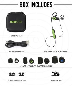 ISOtunes PRO 3.0 Audífonos Solo para Escuchar vienen con 4 pares de almohadillas de espuma con memoria reutilizables y reemplazables (varios tamaños), un cable de carga USB-C, un clip de cocodrilo y dos clips de gestión de cables para personalizar tu experiencia de uso, y un estuche rígido con cremallera para cuando estás en movimiento. Fabricados por Haven Technologies, una empresa familiar estadounidense con sede en Indiana, certificada como pequeña empresa 889. La protección auditiva, la innovación y el servicio al cliente de clase mundial son el centro de nuestra empresa.