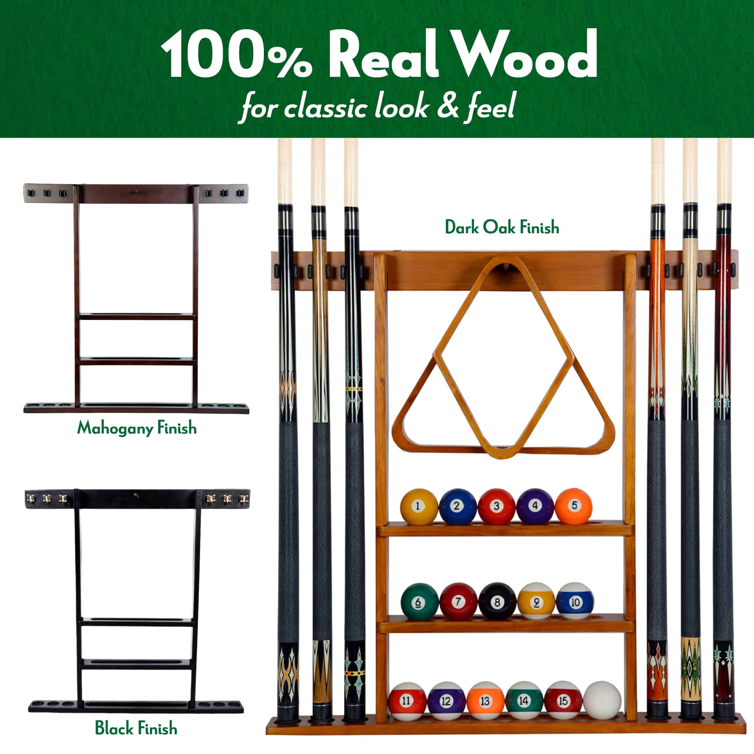 4. REQUIERE ENSAMBLAJE – Nuestro soporte de pared de palo de billar de madera es fácil de armar y viene en varios acabados para que puedas encontrar el rack adecuado para tu hogar. (Ten en cuenta que los palos de billar y las bolas no están incluidos).