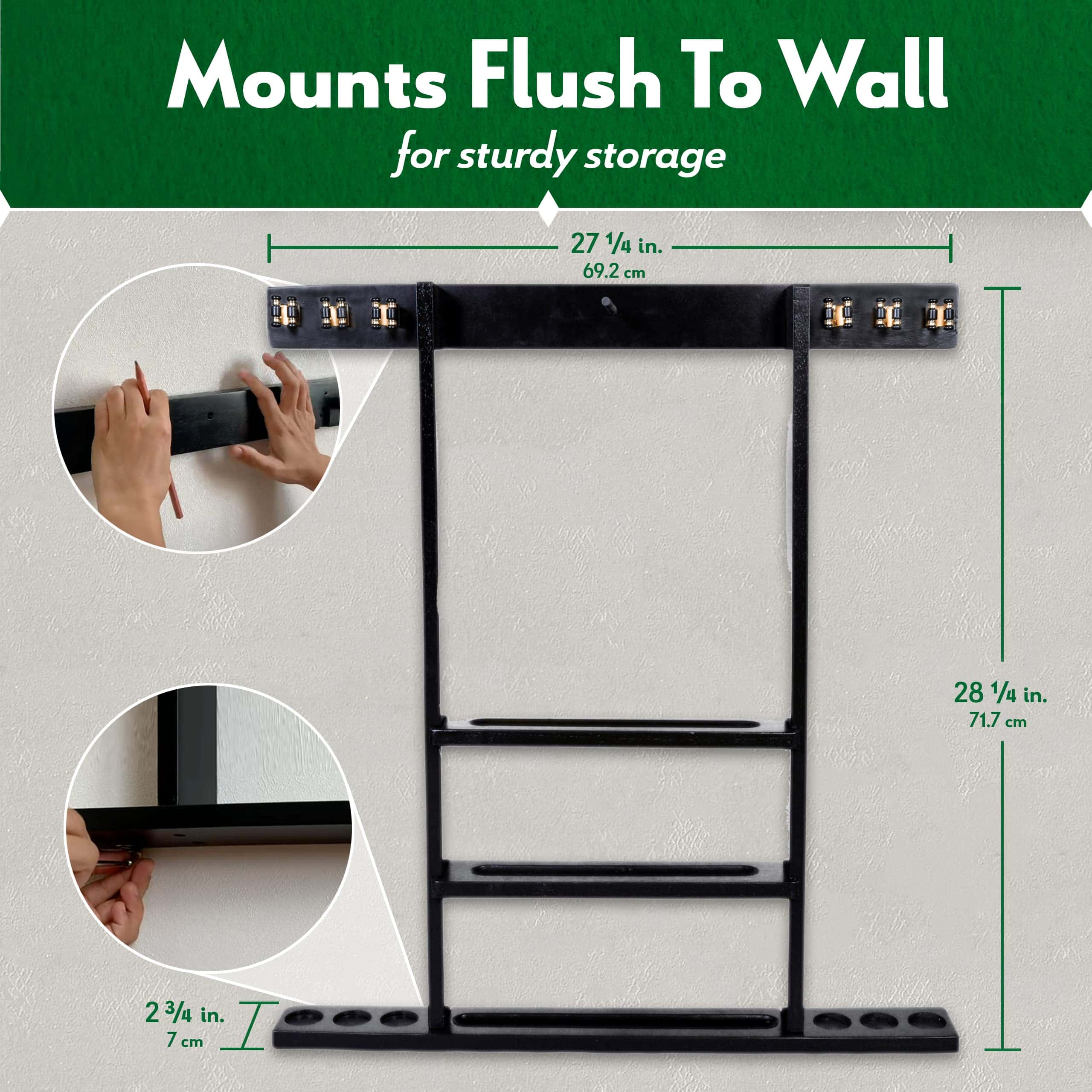 3. HARDWARE DE MONTAJE – Todas las herramientas que necesitas para montar tu rack de palo de billar en la pared están incluidas en el set, incluido el hardware necesario y soportes en forma de L.