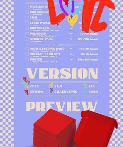 Fecha de lanzamiento: 24 de septiembre de 2021. Composición -Versión: 6 versiones (LA VERSIÓN ESPECIFICADA EN EL TÍTULO SE PROPORCIONARÁ) -Caja de embalaje (+Bandeja de caja): 215x215mm / Diferente por versión -Photobook: 210x210mm / 64 páginas / Diferente por versión -CD-R: Diferente por versión -Letra plegada: 700x200mm / 1 tipo -Photocard: 55x85mm / 2 al azar de 30 / 30 tipos -Polaroid: 70x90mm / 10 tipos / 2 al azar de 10 -Hoja de stickers: 120x210mm / 10 stickers. Beneficio de preventa -Carta en pie de OOTD: 70x140mm / 1 al azar de 5 / 5 tipos -Set de tarjetas especiales: 70x70mm / 1 al azar de 2 / 2 tipos -Póster plegado: 420x420mm / 3 tipos / 1 al azar de 3. Estos beneficios no se pueden garantizar después del período de preventa (24 de septiembre de 2021) debido a la política de distribución del fabricante o cantidad limitada. Por favor, verifique la disponibilidad. Mensaje- Regalo gratis para preventa (No garantizado si no se ordena de CultureKorean) 1) Set de stickers decorativos para teléfono o computadora portátil (1 al azar de 15, grupo o individual). 2) Set extra de photocards (Grupo o individual). Los productos pueden no ser solo para ITZY, sino también para importantes artistas de KPOP debido a problemas de licencia o cantidad limitada. Fabricado en Corea (100 por ciento auténtico). Contará hacia las listas Hanteo y Gaon.