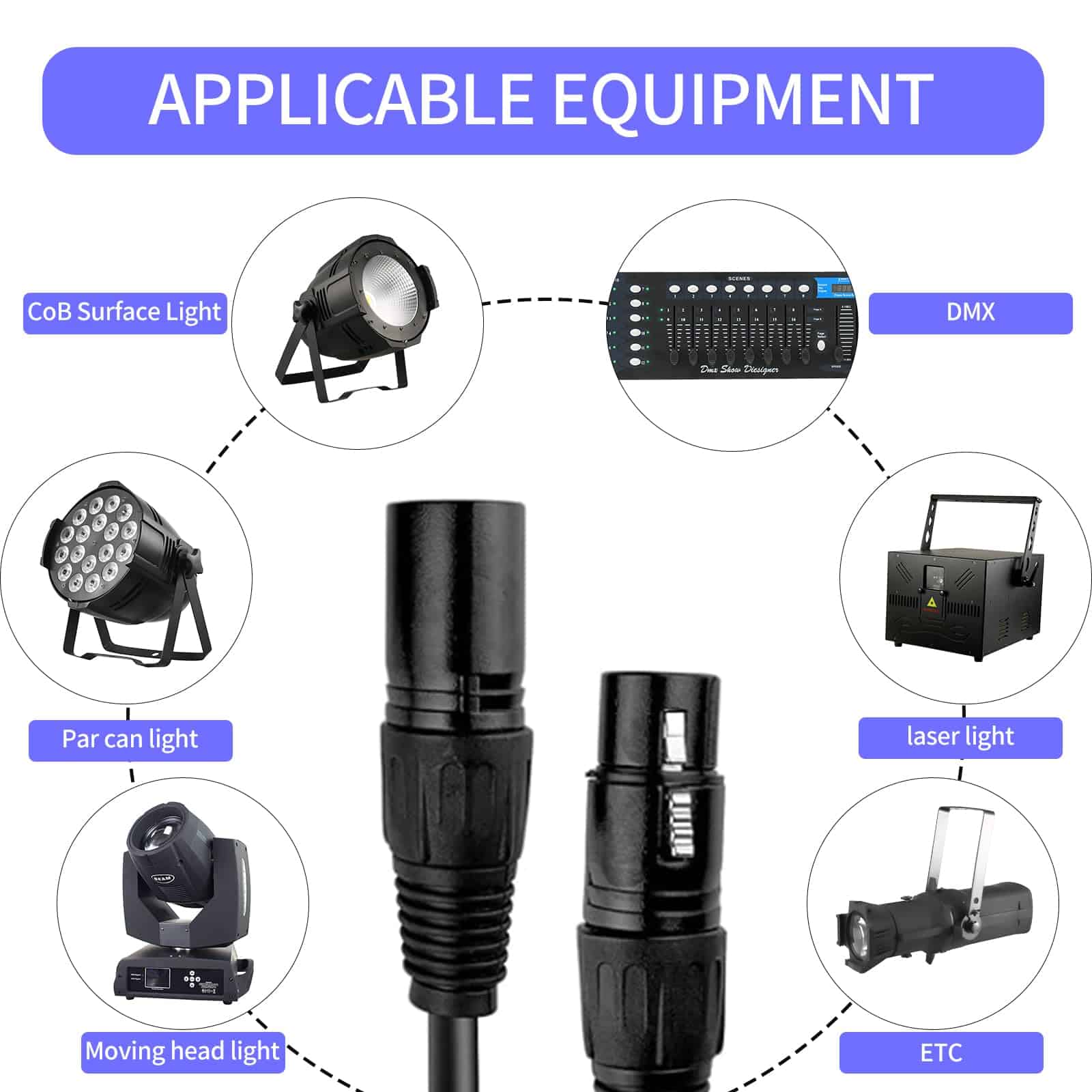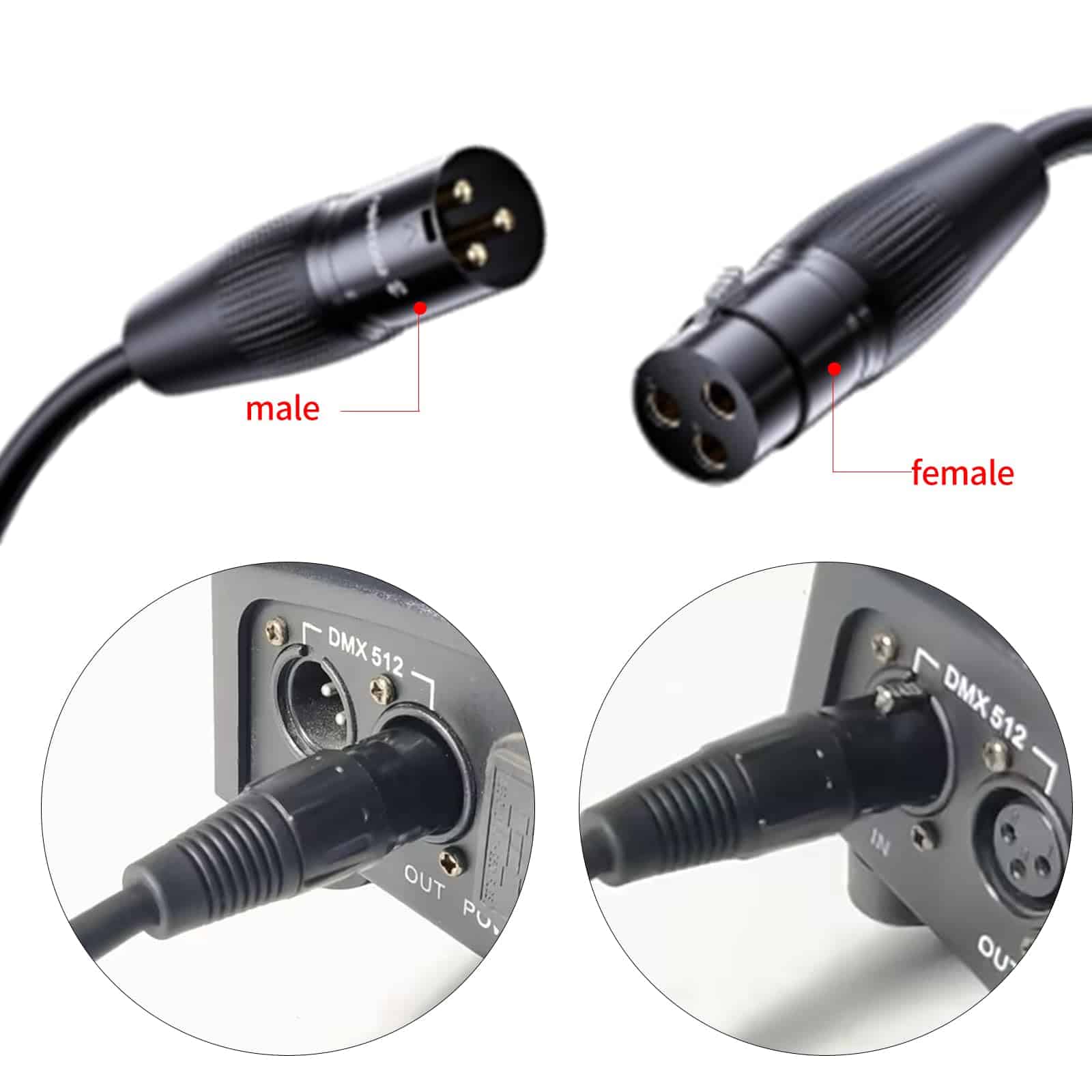 3. Cada cable DMX duradero cuenta con una construcción resistente, asegurando un rendimiento duradero incluso en entornos exigentes. Los conectores están diseñados de manera profesional con una configuración de 3 pines, que se utiliza comúnmente en configuraciones DMX. Esta compatibilidad facilita la conexión de los cables a terminadores DMX estándar u otros dispositivos equipados con puertos DMX de 3 pines.