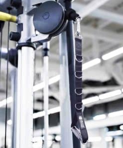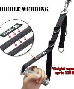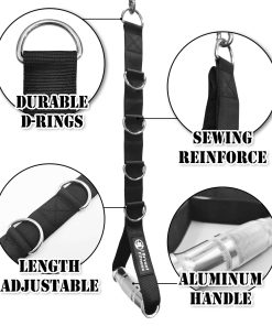 Mango de entrenamiento de peso con múltiples anillos en D, 5 hebillas de conexión en forma de D que se pueden ajustar en diferentes longitudes para el ejercicio. Diseño de doble capa de cintas, super resistente, material de mango de aleación de aluminio de alta resistencia, duradero y ligero. Tiene una superficie cromada altamente pulida y un rendimiento antideslizante, lo que puede aumentar el agarre en la superficie. Hebilla en forma de D soldada, que aumenta la capacidad de carga del anillo en D, lo que mejora la capacidad de carga, seguro y firme. Se puede utilizar al aire libre e en interiores, colocado en una mochila, llevado al gimnasio, conectado a diversos equipos de sistema de poleas para el entrenamiento. Muy adecuado para ejercicios de pull-down, hombros, bíceps y tríceps.