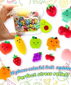 Experimenta la alegría de estos deliciosos Mini Juguetes Suaves Mochi de Frutas de JA-RU. En este cubo de diversión frutal, descubrirás una variedad de squishies de frutas que seguramente te harán sonreír y harán desaparecer tu estrés con cada apretón. Estas mini frutas mochi squishy no son solo juguetes; son tus compañeros para aliviar el estrés, fidgetearse y relajarse. Apriétalos, obsérvalos rebotar y siente cómo la tensión se desvanece. Viene en un contenedor resistente, lo que los hace fáciles de almacenar y transportar. Nuestros juguetes squishy están hechos para ser duraderos y brindar diversión squishy duradera tanto para niños como para adultos. Sorprende a tus amigos, familiares o incluso a ti mismo con el regalo del alivio del estrés squishy. Son un regalo encantador e inesperado, perfecto para cumpleaños, vacaciones o solo porque sí.