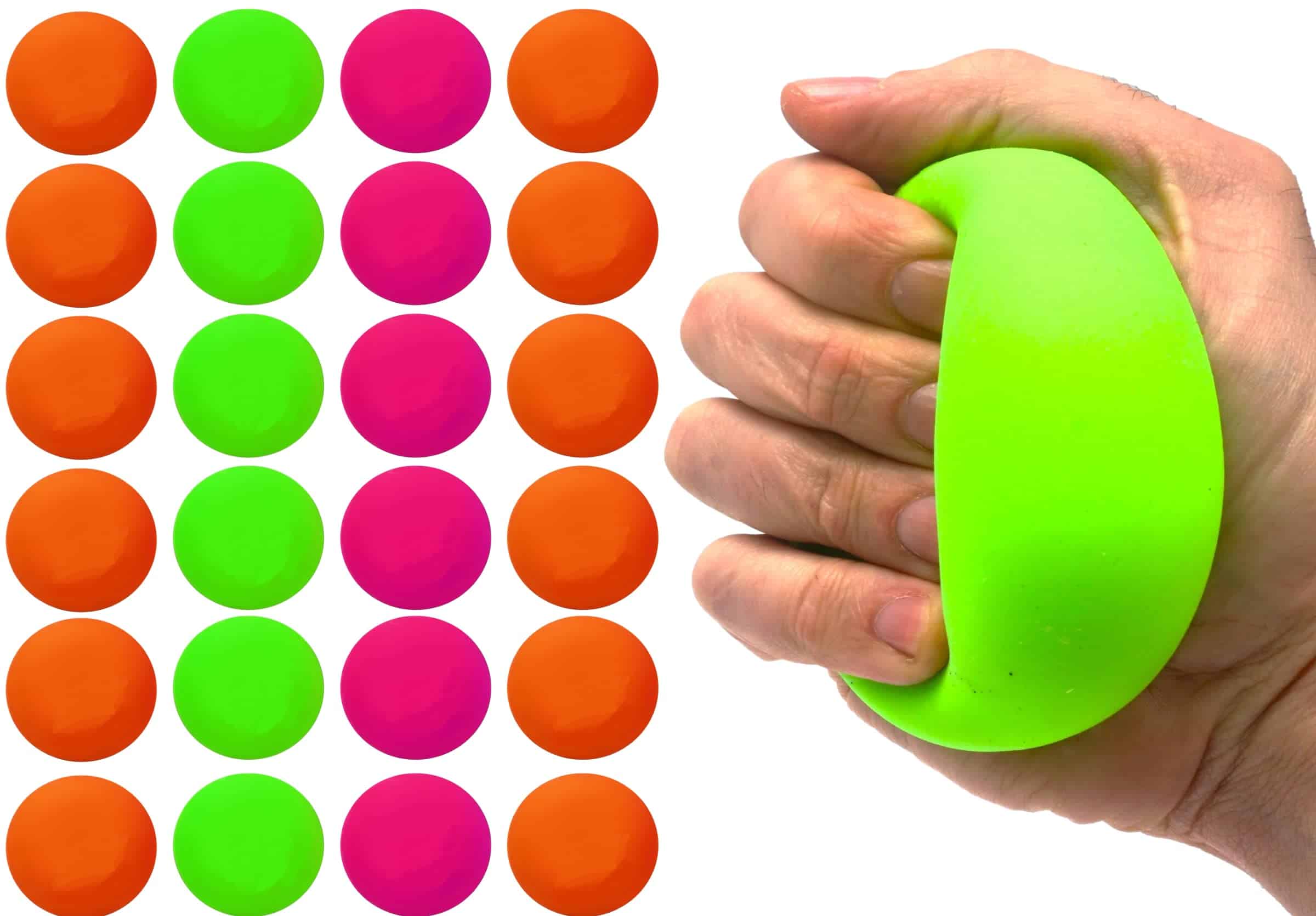 ¡Bola de Estrés Reboteable y Aprietable! Una gran herramienta que sirve como habilidad de afrontamiento para la ansiedad, TDAH y ayuda con el desarrollo de habilidades motoras. Sus colores brillantes animan a los niños a jugar con ella y mantenerse entretenidos. Ideal para Juguetes Sensoriales para el Aula o Fidget de Aula, Juguetes para Trastorno del Procesamiento Sensorial, Juguetes de estrés para niños, Juguetes sensoriales para autismo, Alivio del estrés, Terapia de mano, Aliviador de estrés, Juguete Sensorial Fidget. Para Niños, Niños Pequeños, Adultos, Niños Niñas. Hacer la Relajación Simple. Gran herramienta para Terapeutas.