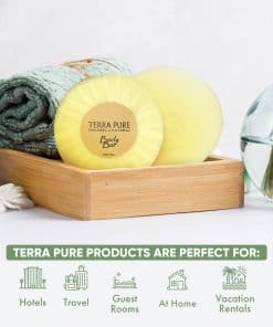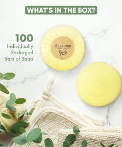 1. Jabón en Barra Terra Pure, Amenidades de Hotel en Tamaño de Viaje, 1.25 oz (Paquete de 100). Diseñado y empaquetado idealmente para su uso en Hoteles, RENTA DE VACACIONES (Hotel y VRBO), Motel, Bed and Breakfast, Habitaciones de Huéspedes y más para ofrecer un servicio de hospitalidad de GRAN APARIENCIA. Contiene 100 barras de jabón en tamaño de viaje individualmente envueltas en pliegues, enriquecidas con MIEL ORGÁNICA y Aloe Vera con un aspecto LUXURIOSO para magnificar la calidad de la experiencia del huésped; desechable para un solo uso para prepararse fácilmente para el próximo huésped.