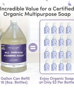 3. ORGÁNICO CERTIFICADO: Certificado Orgánico por Oregon Tilth, nuestro jabón de manos y cuerpo natural está libre de productos químicos agresivos, ofreciendo una opción limpia y segura para el uso diario. Ideal para pieles sensibles, funciona bien como un limpiador corporal humectante para toda la familia, ¡incluso bebés y mascotas!
