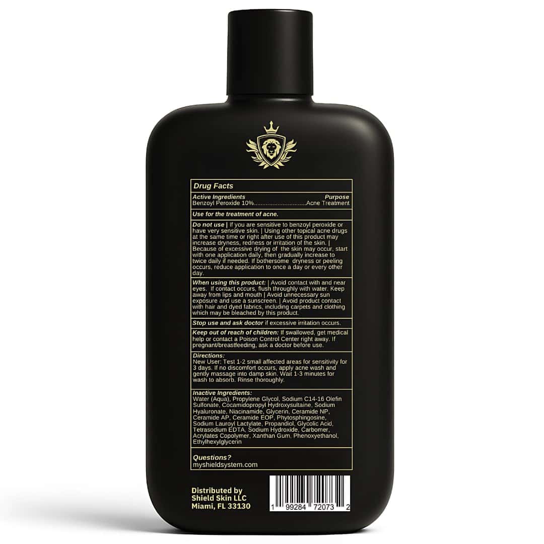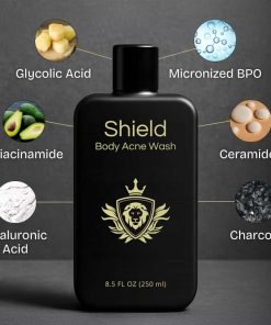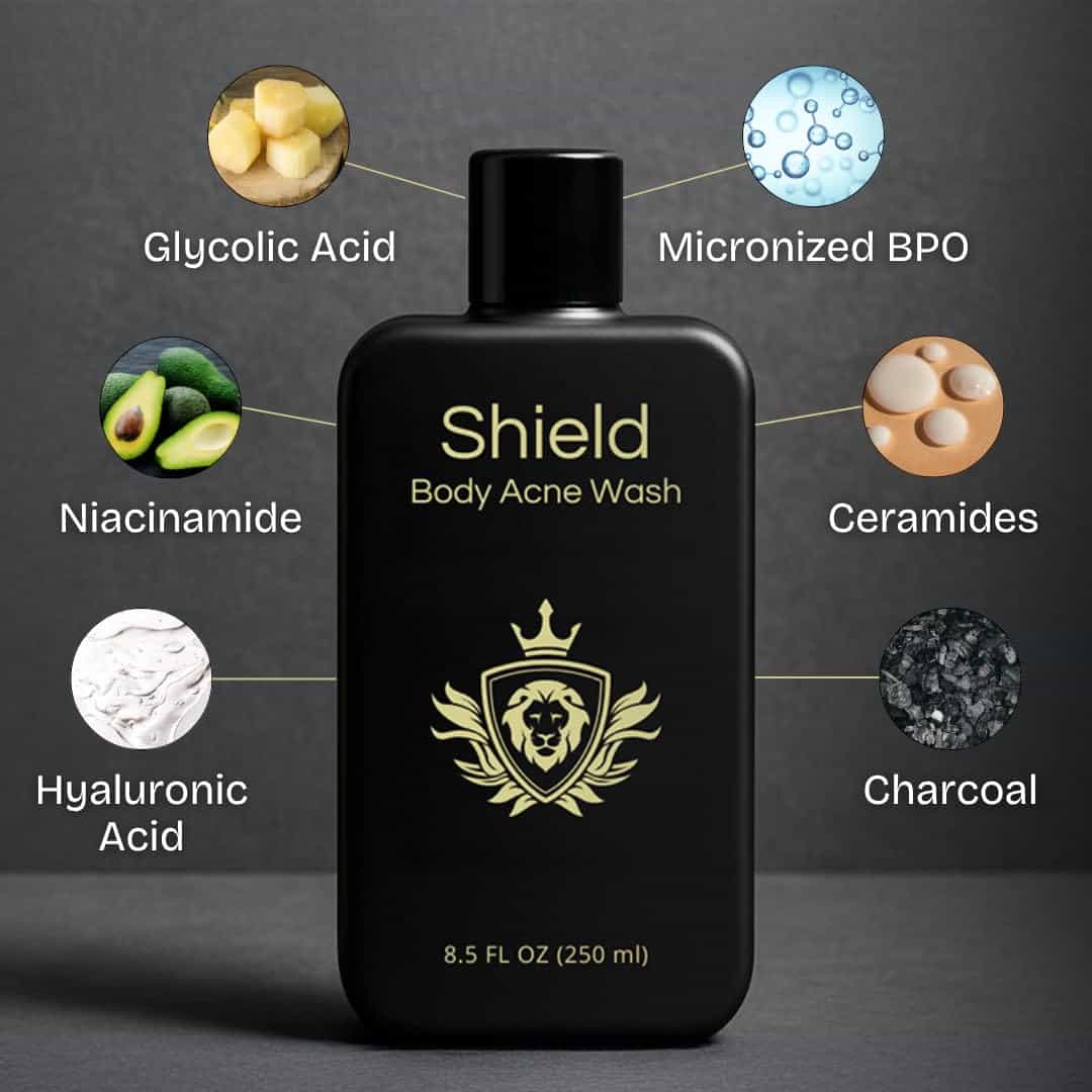 El Jabón para el Cuerpo Shield para Hombres es tu defensa diaria contra el sudor, la acumulación y los poros obstruidos, especialmente en zonas de alto tráfico como la espalda, los hombros y el pecho. Diseñado pensando en la piel más gruesa de los hombres, este limpiador corporal clarificante ayuda a eliminar la suciedad sin resecar ni irritar. La fórmula es sin fragancias y está potenciada por agentes limpiadores suaves para mantener tu piel limpia, suave y refrescada después del gimnasio o al final de un largo día. Ya sea que estés lidiando con poros obstruidos o simplemente quieras una sensación más limpia de pies a cabeza, el jabón de Shield sin complicaciones tiene tu espalda, literalmente.