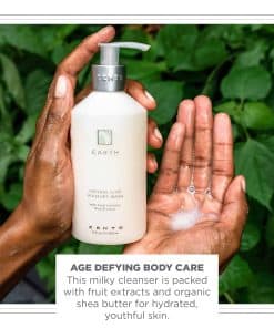 Jabón y loción corporal Zents (Fragancia Tierra) es un limpiador hidratante anti-envejecimiento que combate eficazmente la sequedad de la piel. Ideal para pieles sensibles, este limpiador lechoso está enriquecido con extractos de frutas y manteca de karité orgánica que mantienen la piel hidratada y juvenil. Para disfrutar de un baño de leche exfoliante, simplemente añada unas pocas bombas de jabón al agua tibia del baño y sumérjase para exfoliar suavemente las células muertas de la piel.