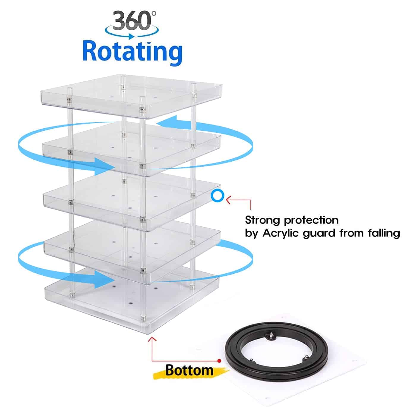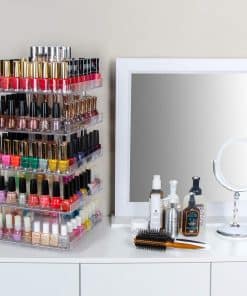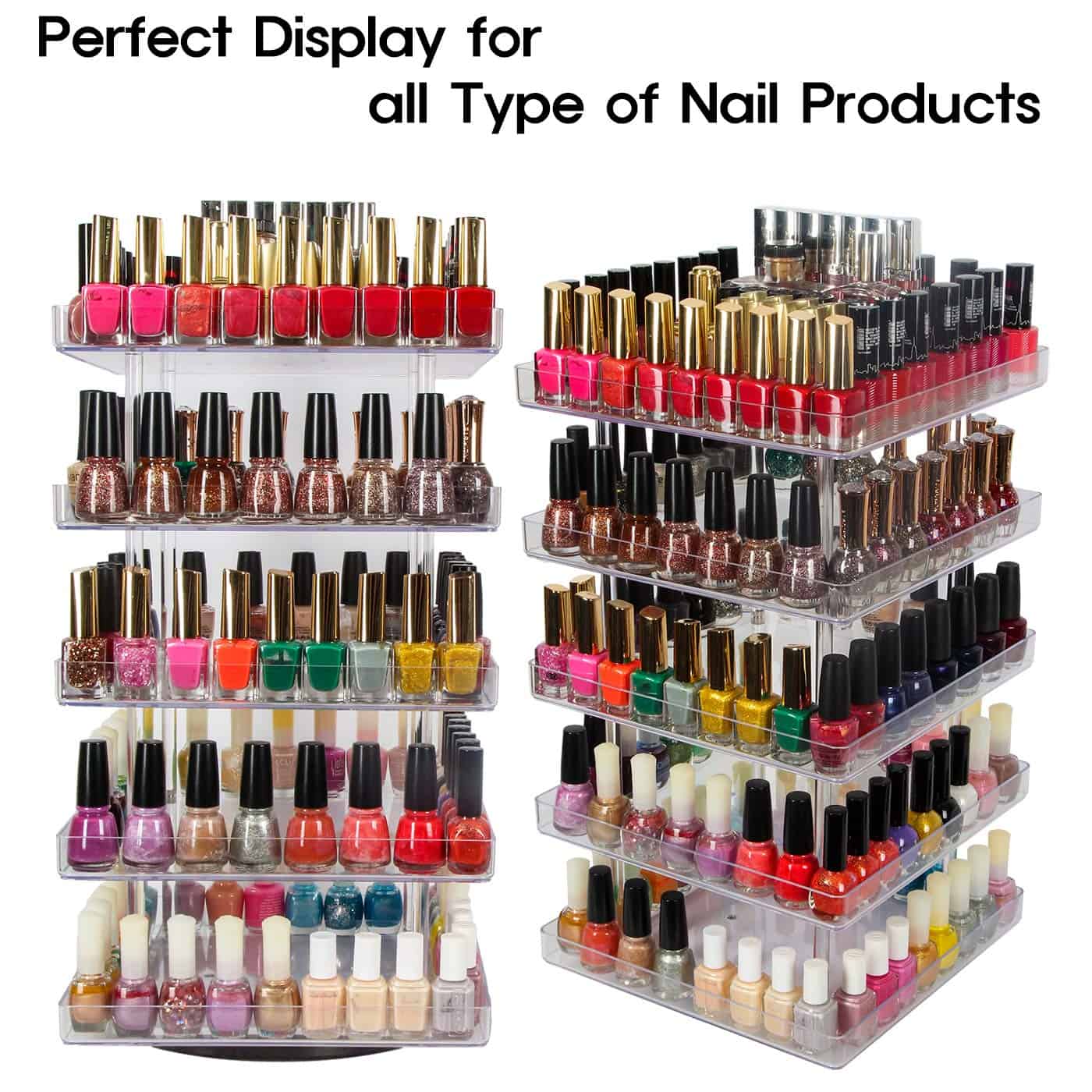 4. EASY TO FIND BY ROTATING – Rotating display rack so easy to find and organize your beautiful nail polish bottles.