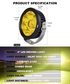 JALN7 Luces LED de Conducción Amarillo 5 Pulgadas Proyector