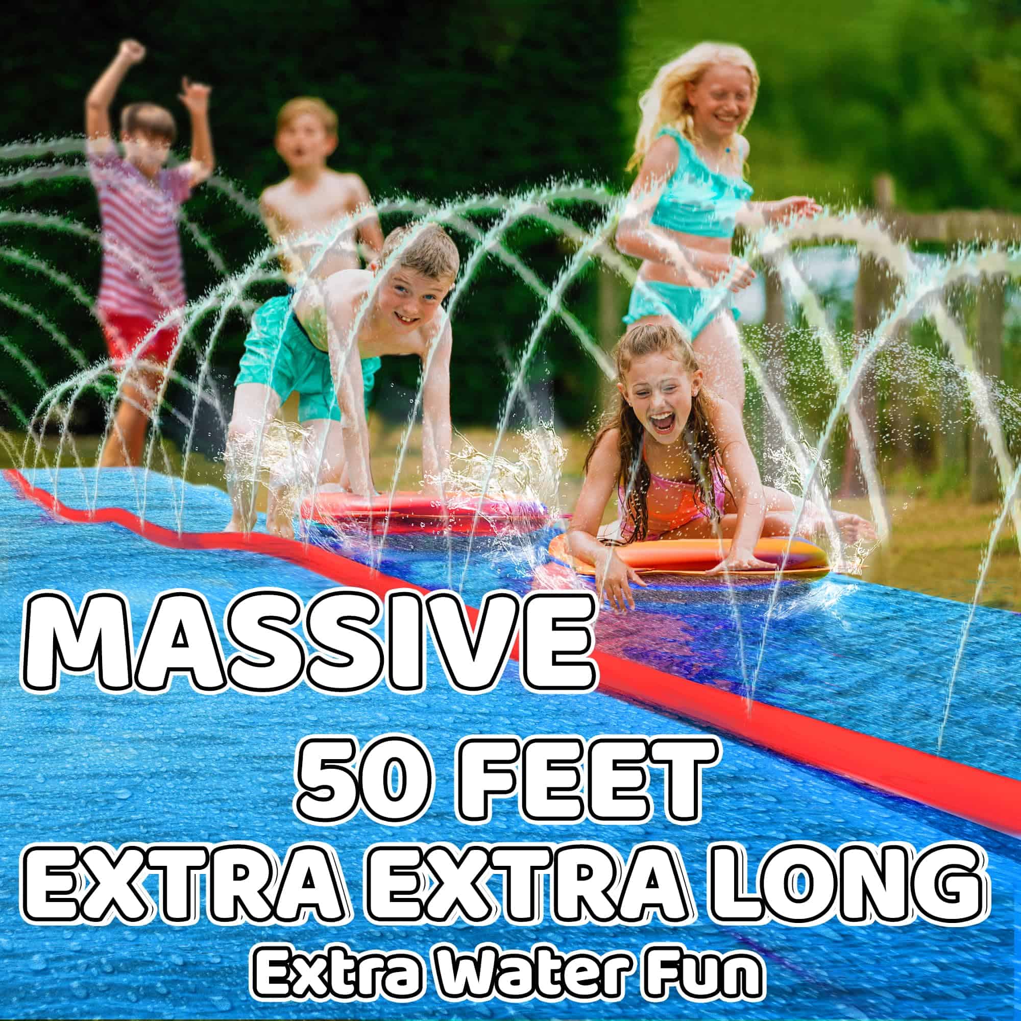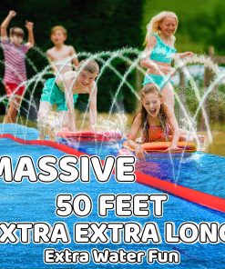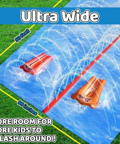 ¡Presentamos el Mega Slip, Splash & Slide! ¡Haz una gran oleada este verano con nuestro tobogán de agua de gran tamaño y ancho perfecto para la diversión en el patio trasero! Diseñado pensando en los amantes de la emoción, este tobogán de agua para el césped cuenta con un impresionante sistema de aspersores en canal central que garantiza un flujo continuo de agua para una acción deslizante sin parar.
